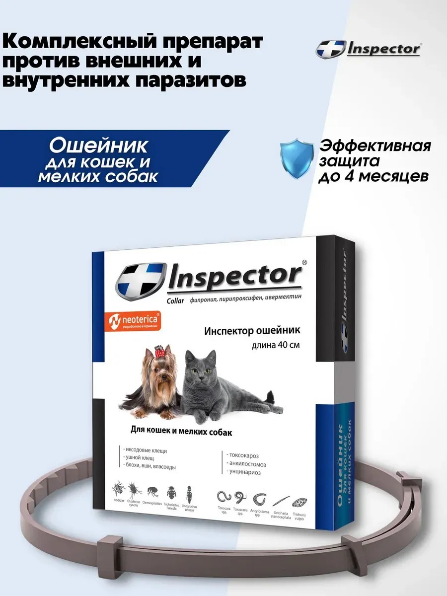 Инспектор ошейник от паразитов для кошек и мелких собак 1 шт