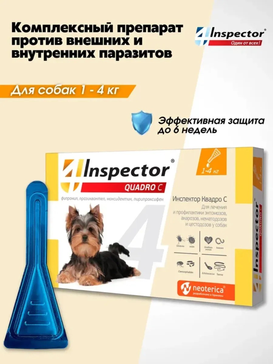 Инспектор Квадро С Капли для собак 1-4 кг (1 пипетка)