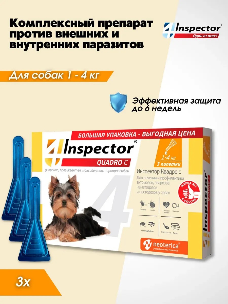 Инспектор Квадро С Капли для собак 1-4 кг (3 пипетки)