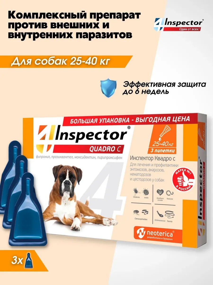 Инспектор Квадро С Капли для собак 25-40 кг (3 пипетки)