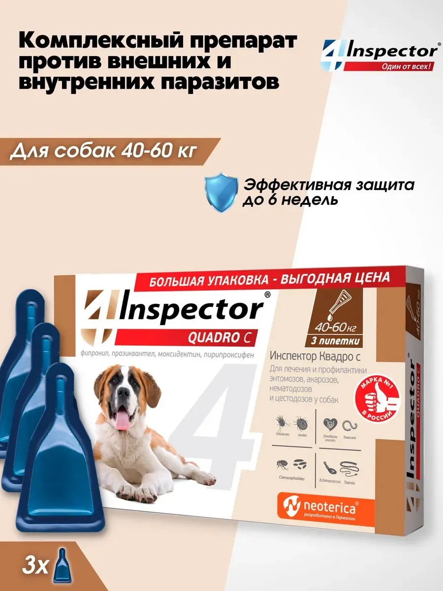Инспектор Квадро С Капли для собак 40-60 кг (3 пипетки)