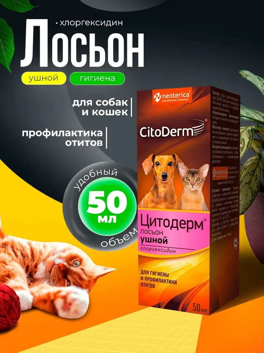 Neoterica Лосьон ушной Цитодерм для кошек и собак, 50 мл