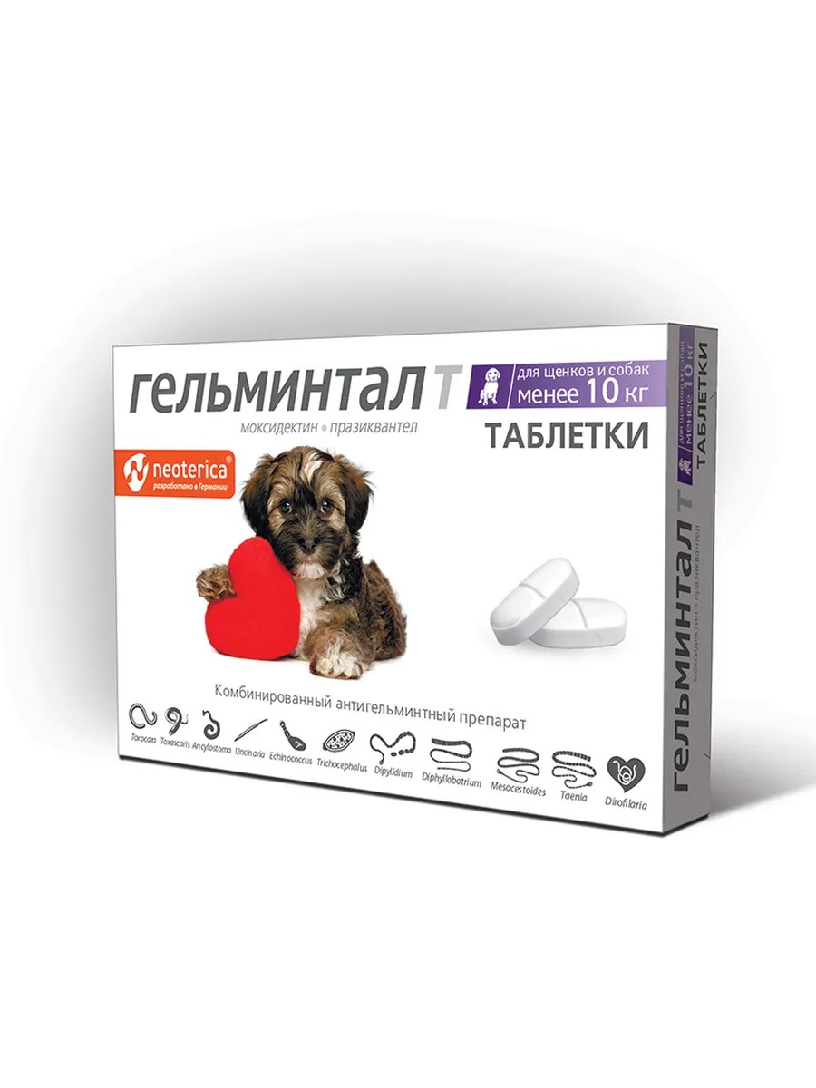 Таблетки Гельминтал для щенков и собак менее 10 кг, 2 шт