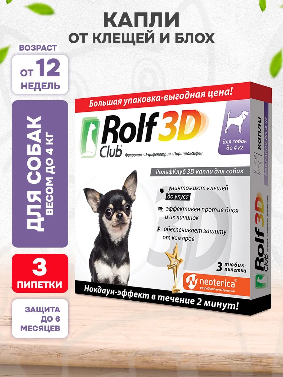 RolfClub 3D drops for dogs weighing up to 4 kg.