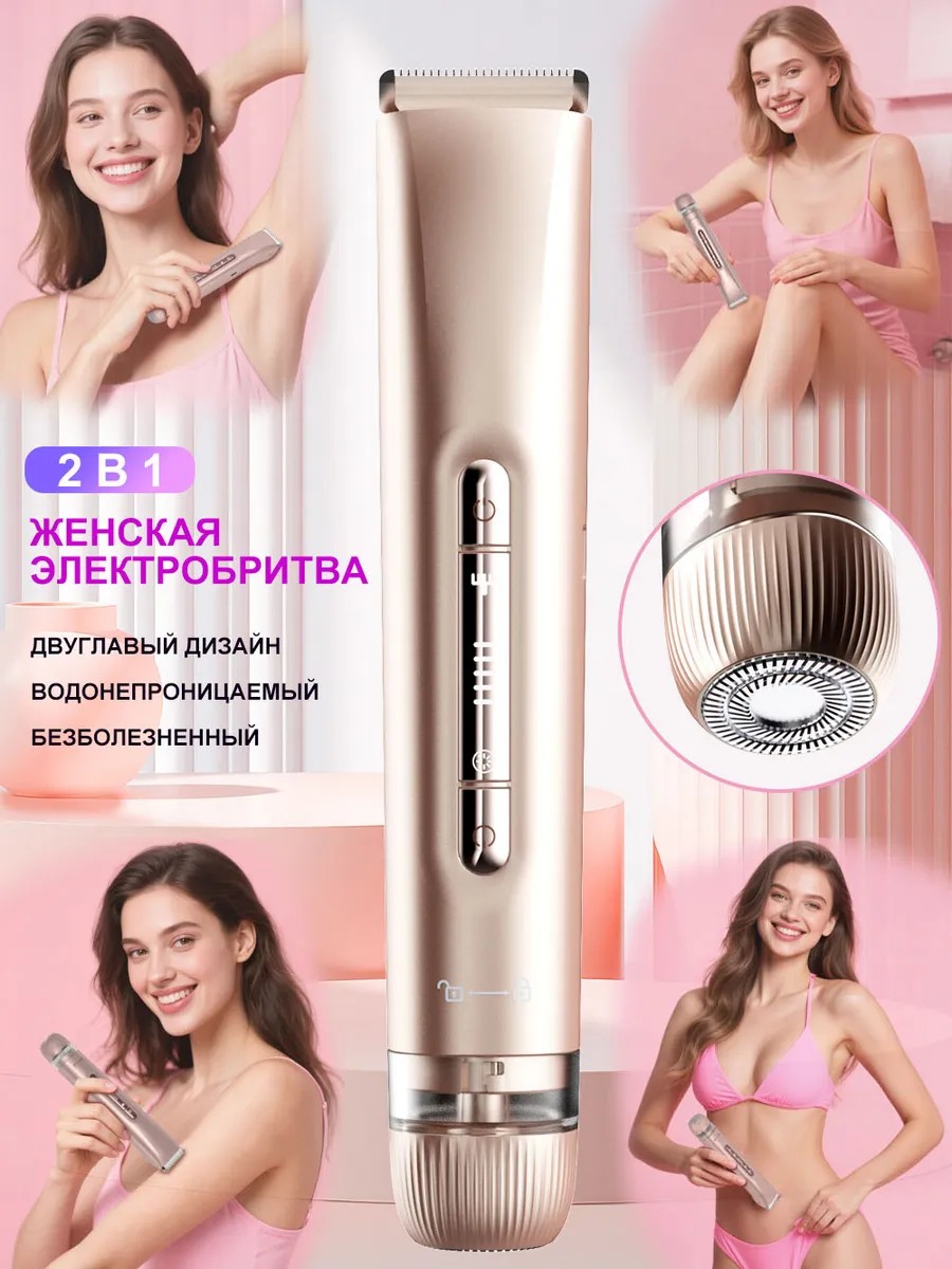 This professional women's electric shaver trimmer features an innovative dual-head design that combines a precision trimmer and a gentle shaving head.
