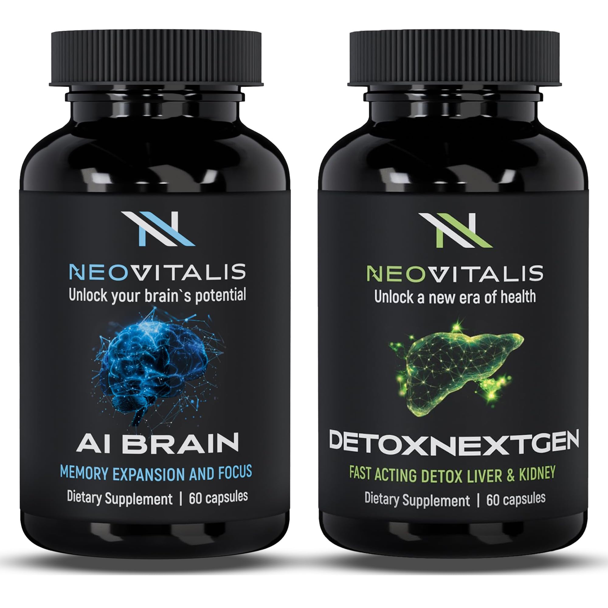 NeoVitalis Brain & Detox Wellness Bundle | AI Brain Nootropic Capsules for Memory Focus + DetoxNextGen Liver & Kidney Support | Cognitive Detox Immune Boost & Toxin Removal Supplement | 120 Caps