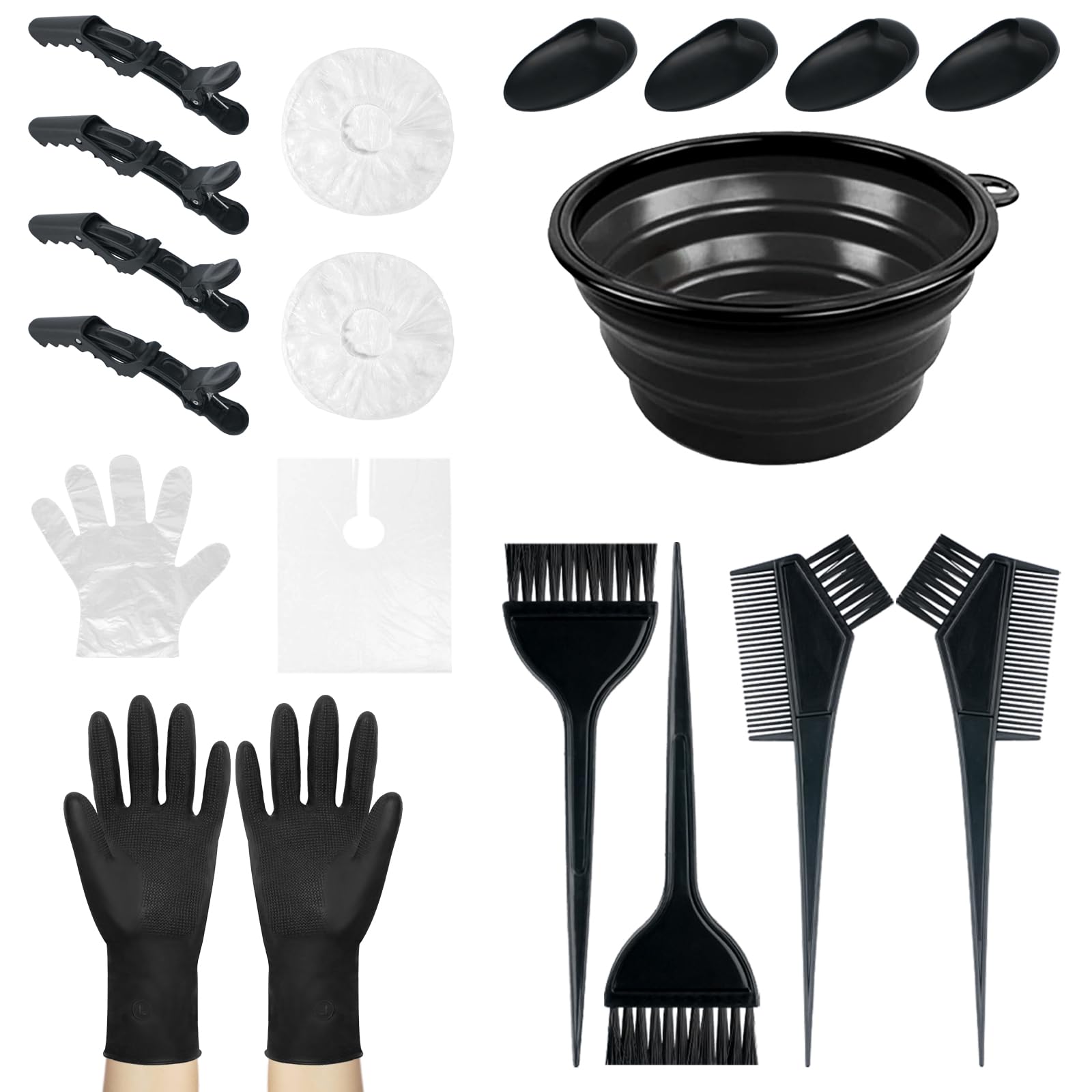 Ergonomic Design: The brushes and bowls in our set are ergonomically designed for a comfortable grip and precise application, ensuring professional results every time. Premium Material: Our hair coloring brush set is made from high-quality PP, which is sturdy, durable, and easy to clean. With our brushes, you can color your hair simply and precisely. Easy to Use: Whether you're a professional hairstylist or coloring your hair at home, our kit is easy to use and allows you to achieve salon-quality results, even without prior experience. Professional Quality: Our brushes and bowls are designed to provide precise and even color application, guaranteeing professional results every time. Complete 18-Piece Set: Our hair coloring kit includes a full range of accessories, including brushes, bowls, and highlighting kits, to meet all your bleaching, coloring, and highlighting needs.Conception Ergonomique: Les pinceaux et les bols de notre ensemble sont conçus de manière ergonomique pour une prise en main confortable et une application précise, assurant des résultats professionnels à chaque utilisation. Matériau Premium: Notre ensemble de pinceaux de coloration des cheveux est fabriqué à partir de PP de haute qualité, robuste, durable et facile à nettoyer. Avec nos pinceaux, vous pouvez colorer vos cheveux de manière simple et précise. Facile à Utiliser: Que vous soyez un professionnel de la coiffure ou que vous fassiez votre coloration à la maison, notre kit est facile à utiliser et vous permet d'obtenir des résultats dignes d'un salon, même sans expérience préalable. Qualité Professionnelle: Nos pinceaux et bols sont conçus pour offrir une application précise et uniforme de la couleur, garantissant des résultats professionnels à chaque utilisation. Ensemble Complet de 18 Pièces: Notre kit de coloration des cheveux comprend une gamme complète d'accessoires, y compris des pinceaux, des bols et des kits de mèches, pour répondre à tous vos besoins en matière de décoloration, de coloration et de balayage.NEPAK 18 Pcs Pinceau Coloration Cheveux Kit,Kit Coloration Cheveux avec Pinceaux et Bol,Idéal pour Décoloration, Mèches, Balayage
