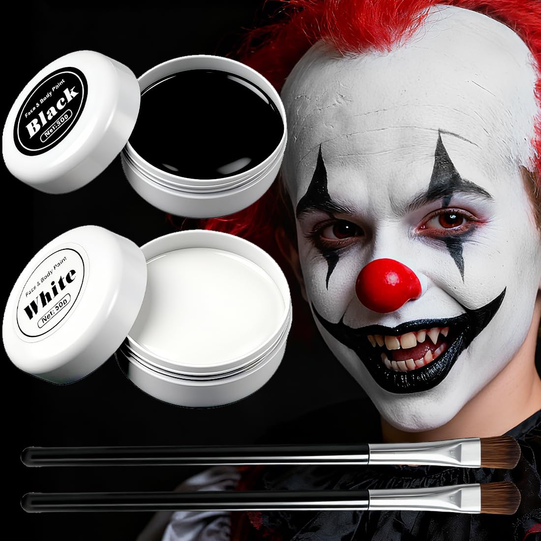 ? Halloween Face Makeup, Black and White Halloween Face Makeup, Professional Halloween Makeup for Kids, Adults, and Women for Face Painting, Carnival, Theater, Cosplay, Fancy Dress, Clown, SFX, Body Paints SAFETY WARNING 0? Many Occasions: This carnival makeup for children and adults is suitable for many occasions, such as carnival parties, Halloween, stage performances, school or kindergarten activities, etc. A perfect look for your theme party, cosplay, birthday party, theatrical performance, and more! ? Safe Material: Our Halloween Face Makeup is made only with non-toxic, cosmetic-grade ingredients. The white face makeup is gentle on the skin and won't cause itching or irritation. Suitable for both children and adults. Safe to use. ? Comfortable and Skin-Friendly: Our face body paints are water-activated and work similarly to watercolor paints. Add several drops of water to the desired color to make a soft, paste-like consistency, then apply it to the skin with the brush. ? Easy to use: This Halloween face makeup is very easy to apply and remove. It can be easily applied with a sponge, brush, or your fingers. It's also easy to remove with professional makeup remover. ? Halloween makeup kit: Includes black and white Halloween makeup, 50g per piece, and 2 makeup brushes. It can be used directly or mixed with other colors to create different shades you like. Perfect for body and face painting.Maquillage Halloween pour Visage, Maquillage Noir et blanc pour le visage Halloween, kit de maquillage pour Halloween,pour Peinture Visage Carnaval Théâtre Cosplay Fantaisie Clown SFX Corps Peintures White and BlackDESCRIPTION DU PRODUIT DESCRIPTION DU PRODUIT ? Maquillage Halloween pour Visage, Maquillage Noir et blanc pour le visage Halloween, it Maquillage Halloween Professionnel Enfant Adulte Femme pour Peinture Visage Carnaval Théâtre Cosplay Fantaisie Clown SFX Corps Peintures AVERTISSEMENT DE SÉCURITÉ 0? Nombreuses occasions : le maquillage de carnaval pour enfants et adultes convient à de nombreuses occasions, telles que les fêtes de carnaval, Halloween, les spectacles sur scène, les activités scolaires ou de maternelle, etc. Look parfait pour votre fête à thème, cosplay, fête d'anniversaire, représentation théâtrale et plus encore !. ? Matériau de sécurité : notre Maquillage Halloween pour Visage est composé uniquement d'ingrédients non toxiques de qualité cosmétique.Maquillage blanc pour le visage doux pour la peau, ne provoque pas de démangeaisons ou d'irritations de la peau. Convient aussi bien aux enfants qu'aux adultes. Utilisation sûre. ? Confortable et douce pour la peau : nos peintures pour visage corps sont activées par l'eau et fonctionnent de la même manière que les peintures aquarelle. Ajoutez plusieurs gouttes d'eau à la couleur désirée pour rendre la surface douce et pâteuse, puis appliquez-la sur la peau avec le pinceau. ? Facile à utiliser : le Maquillage Halloween pour Visage est très facile à appliquer et à enlever, il peut être facilement appliqué avec une éponge, un pinceau ou les doigts. Facile à enlever avec un démaquillant professionnel. ? Kit de maquillage d'Halloween : maquillage d'Halloween noir, blanc, 50 g par pièce et 2 pinceaux de maquillage. Peut être utilisé directement ou mélangé avec d'autres couleurs pour créer différentes couleurs que vous aimez, parfait pour la peinture du corps et du visage, idéal pour la peinture corporelle et la peinture du visage.