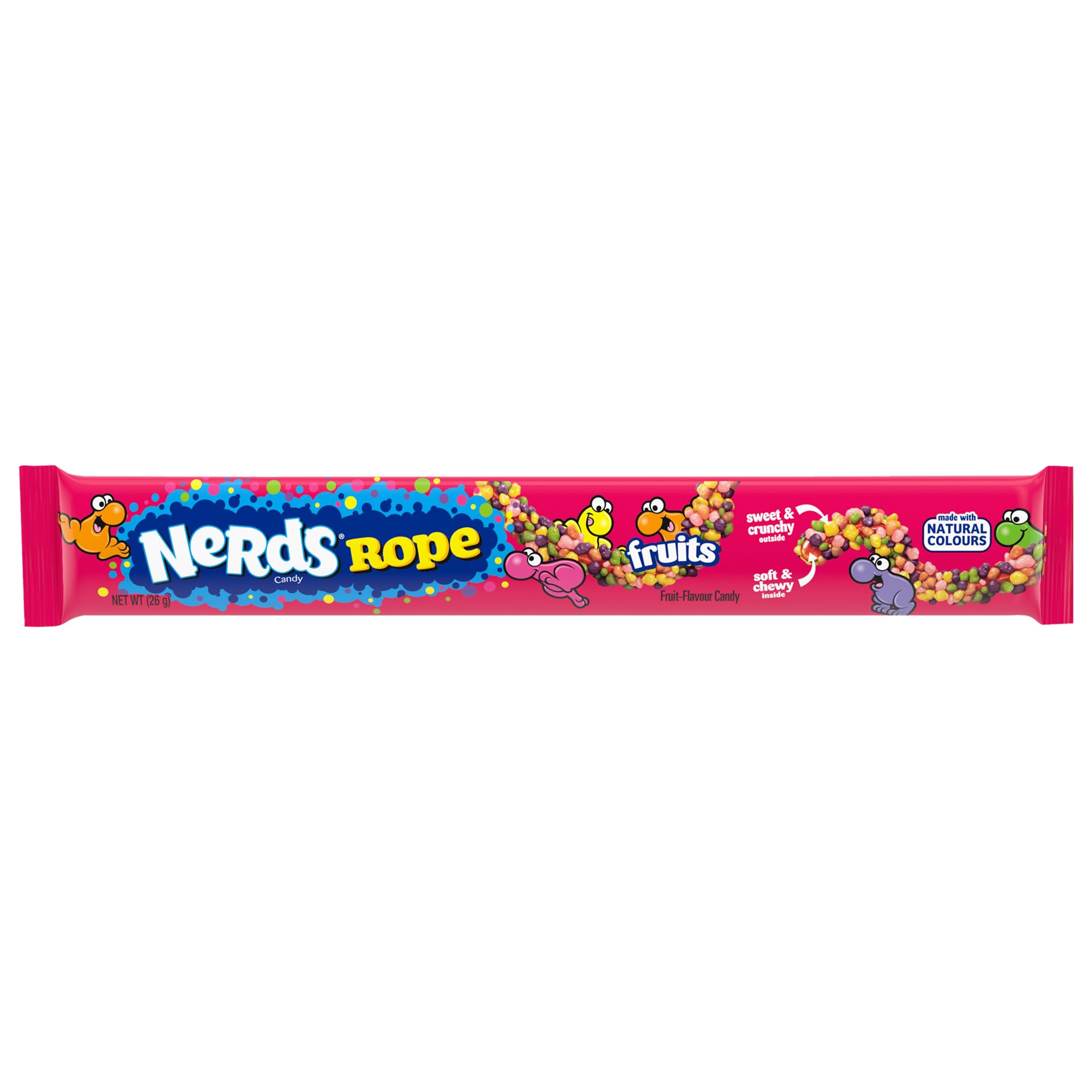 Nerds Rope Count Good - Candy with Gelatinous and Crunchy Texture - Pack of 24 Bars x 26 g SMALL SOFT SPARKS WITH EACH BITE Nerds Rope mixes the best of both worlds: a gelatinous center coated in multi-colored Nerds candies. An explosion of little crunchy "sweet sparkles" that will surprise you with every bite. A CELEBRATION OF FLAVORS Each bite is a feast of contrasts, combining sweet and tart flavors with a chewy center. The little candies add a vibrant touch that will transform your palate into a carnival of flavors. NATURAL CONFETTI Coated in small, colorful candies, Nerds Rope is made with high-quality ingredients and plant-based colors. A delicious option without artificial flavors. PERFECT FOR SHARE This pack contains 24 bars of 26 g, perfect for sharing at parties, meetings or to enjoy alone at any time. With their bright colors and eye-catching presentation, they are a guaranteed hit for all ages! UNLIMITED ENTERTAINMENT! At Nerds, we celebrate our perfectly imperfect shapes because we know that together they create something unique. With our iconic packaging and crispy, chewy textures, every bite is an unparalleled experience.LIMITS OF FUN: At Nerds, we celebrate our perfectly imperfect shapes because together, they create something unique. With our signature packaging and crispy-chewy textures, every bite is an unparalleled experience. PERFECT FOR SHARING: This pack contains 24 x 26g bars, perfect for sharing at parties, get-togethers, or enjoying on their own anytime. With their vibrant colors and eye-catching presentation, they're a guaranteed hit for all ages!. NATURAL CONFETTI: Coated in colorful candy sprinkles, Nerds Rope is made with high-quality ingredients and plant-based colors. A delicious option with no artificial flavors. A CELEBRATION OF FLAVORS: Every bite is a feast of contrasts, combining sweet and tangy flavors with a chewy center. The candy sprinkles add a vibrant pop that will transform your palate into a carnival of flavors. SWEET SPARKLES WITH EVERY BITE: Nerds Rope combines the best of both worlds: a gummy center coated in multicolored Nerds candies. An explosion of crunchy, sweet sparkles that will surprise you with every bite. Nerds Rope Count Good - Bonbons avec Texture Gélatineuse et Croustillante - Pack de 24 Barres x 26 g PETITES ÉTINCELLES DOUCES À CHAQUE MORSURE Nerds Rope mélange le meilleur des deux mondes : un centre gélatineux enrobé de bonbons Nerds multicolores. Une explosion de petites "étincelles sucrées" croustillantes qui vous surprendront à chaque bouchée. UNE CÉLÉBRATION DE SAVEURS Chaque bouchée est une fête de contrastes, combinant des saveurs sucrées et acidulées avec un centre moelleux. Les petits bonbons ajoutent une touche vibrante qui transformera votre palais en un carnaval de saveurs. CONFETTIS NATURELS Enrobé de petits bonbons colorés, le Nerds Rope est fabriqué avec des ingrédients de haute qualité et des couleurs d'origine végétale. Une option délicieuse sans arômes artificiels. PARFAIT POUR PARTAGER Ce pack contient 24 barres de 26 g, parfaites pour partager lors de fêtes, réunions ou à déguster seul à tout moment. Avec leurs couleurs vives et leur présentation accrocheuse, elles sont un succès garanti pour tous les âges ! DIVERTISSEMENT SANS LIMITES ! Chez Nerds, nous célébrons nos formes parfaitement imparfaites car nous savons qu'ensemble, elles créent quelque chose d'unique. Avec nos emballages emblématiques et nos textures croustillantes et moelleuses, chaque bouchée est une expérience inégalée.DIVERTISSEMENT SANS LIMITES : Chez Nerds nous célébrons nos formes parfaitement imparfaites, car ensemble, elles créent quelque chose d'unique. Avec nos emballages emblématiques et nos textures croustillantes et moelleuses, chaque bouchée est une expérience inégalée. PARFAIT POUR PARTAGER : Ce pack contient 24 barres de 26g, parfaites pour partager lors de fêtes, réunions ou à déguster seul à tout moment. Avec leurs couleurs vives et leur présentation accrocheuse, elles sont un succès garanti pour tous les âges !. CONFETTIS NATURELS : Enrobé de petits bonbons colorés, Nerds Rope est fabriqué avec des ingrédients de haute qualité et des couleurs d'origine végétale. Une option délicieuse sans arômes artificiels. UNE CÉLÉBRATION DE SAVEURS : Chaque bouchée est une fête de contrastes, combinant saveurs sucrées et acidulées avec un centre moelleux. Les petits bonbons ajoutent une touche vibrante qui transformera votre palais en un carnaval de saveurs. PETITES ÉTINCELLES DOUCES À CHAQUE MORSURE : Nerds Rope combine le meilleur des deux mondes : un centre gélatineux enrobé de bonbons Nerds multicolores. Une explosion de petites étincelles croustillantes et sucrées qui vous surprendront à chaque bouchée.