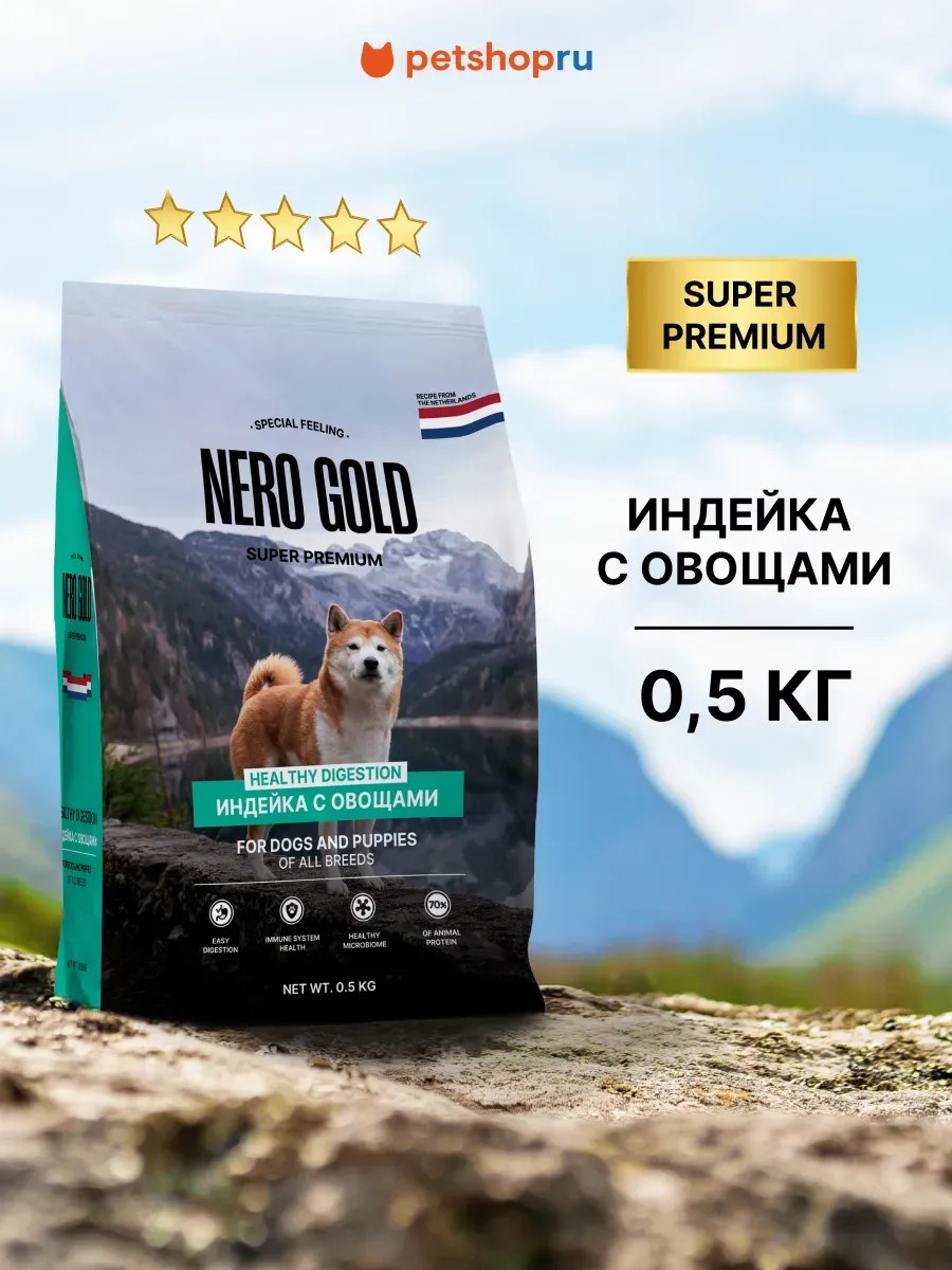 NERO GOLD super premium Корм для собак и щенков с мясом индейки и овощами, 0,5 кг