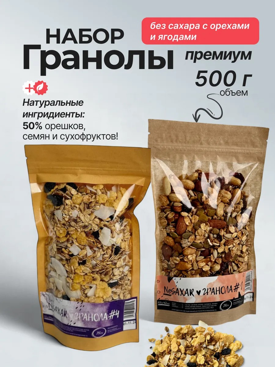 Не упустите возможность попробовать наш набор из двух упаковок гранолы с орехами и с грецким орехом. Это идеальный выбор для тех, кто ценит качественные и натуральные продукты. Сделайте шаг к здоровью уже сегодня!