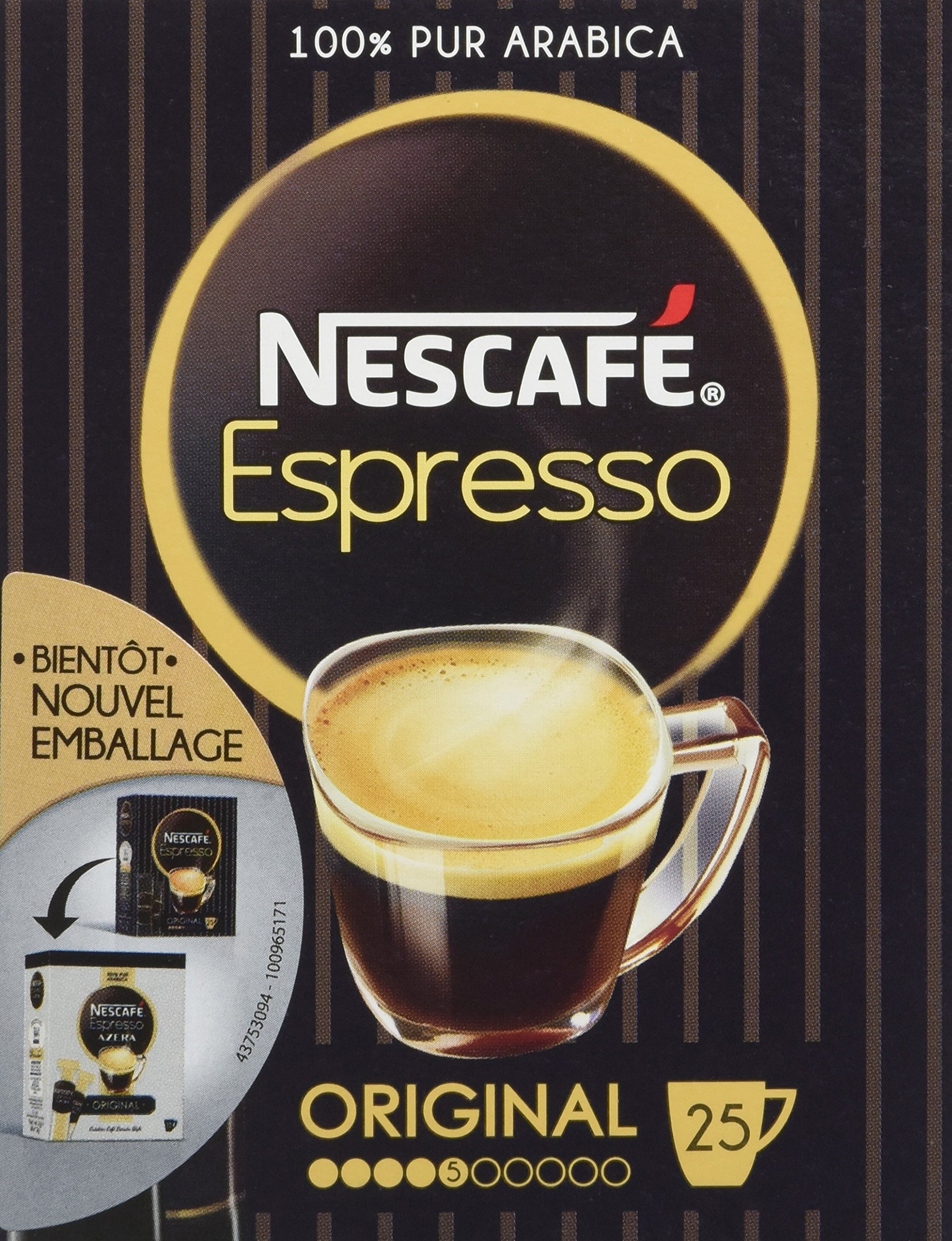 NESCAFÉ Espresso AZERA Original is a 100 pure Arabica espresso, with refined and fruity aromas, enhanced by a fine, velvety foam. Discover all the expertise and creativity of our Baristas in your cup! We carefully select and roast high-quality Arabica beans to offer you NESCAFÉ Espresso AZERA Original, our new Barista-style coffee creation. A barista is an expert who excels in the art of creating and serving coffee to give you a unique experience. At home, recreate this experience in an instant, by making a perfect cup of espresso with a fine, velvety foam! INGREDIENTS 100 Pure Arabica Instant Coffee INSTRUCTIONS To enjoy your NESCAFÉ Espresso AZERA Original, simply pour one stick into a small espresso cup, add 60 ml of water at the right temperature (just simmering) and stir gently. To enjoy your NESCAFÉ Espresso AZERA Original, simply pour one stick into a small espresso cup, add 60 ml of water at the right temperature (just simmering), and stir gently. With our individual sticks, you can recreate a barista-style coffee anytime. All the expertise of our baristas in your cup. A fine, golden, velvety foam. A 100 pure Arabica espresso with refined, fruity aromas. NESCAFÉ Espresso AZERA Original est un espresso 100 pur arabica, aux arômes raffinés et fruités, sublimé par une fine mousse veloutée. Retrouvez toute l'expertise et la créativité de nos Baristas dans votre tasse ! Nous sélectionnons et torréfions avec soin des grains d'arabicas de grande qualité pour vous offrir NESCAFÉ Espresso AZERA Original, notre nouvelle création café Barista style. Un barista est un expert qui excelle dans l'art de créer et de servir le café pour vous faire vivre un moment unique. Chez vous, recréez cette expérience en un instant, en réalisant une tasse parfaite d'espresso à la fine mousse veloutée ! INGRÉDIENTS Café instantané 100 pur arabica MODE D'EMPLOI Pour déguster votre NESCAFÉ Espresso AZERA Original, il vous suffit de verser un stick dans une petite tasse à espresso, rajouter 60 ml d'eau à la bonne température (eau juste frémissante) et remuer délicatement. Pour déguster votre NESCAFÉ Espresso AZERA Original, il vous suffit de verser un stick dans une petite tasse à espresso, rajouter 60 ml d'eau à la bonne température (eau juste frémissante) et remuer délicatement. Grâce à nos sticks individuels, recréez à tout moment un café à la manière d'un Barista. Toute l'expertise de nos Baristas dans votre tasse. Une fine mousse dorée et veloutée. Un espresso 100 pur arabica aux arômes raffinés et fruités.