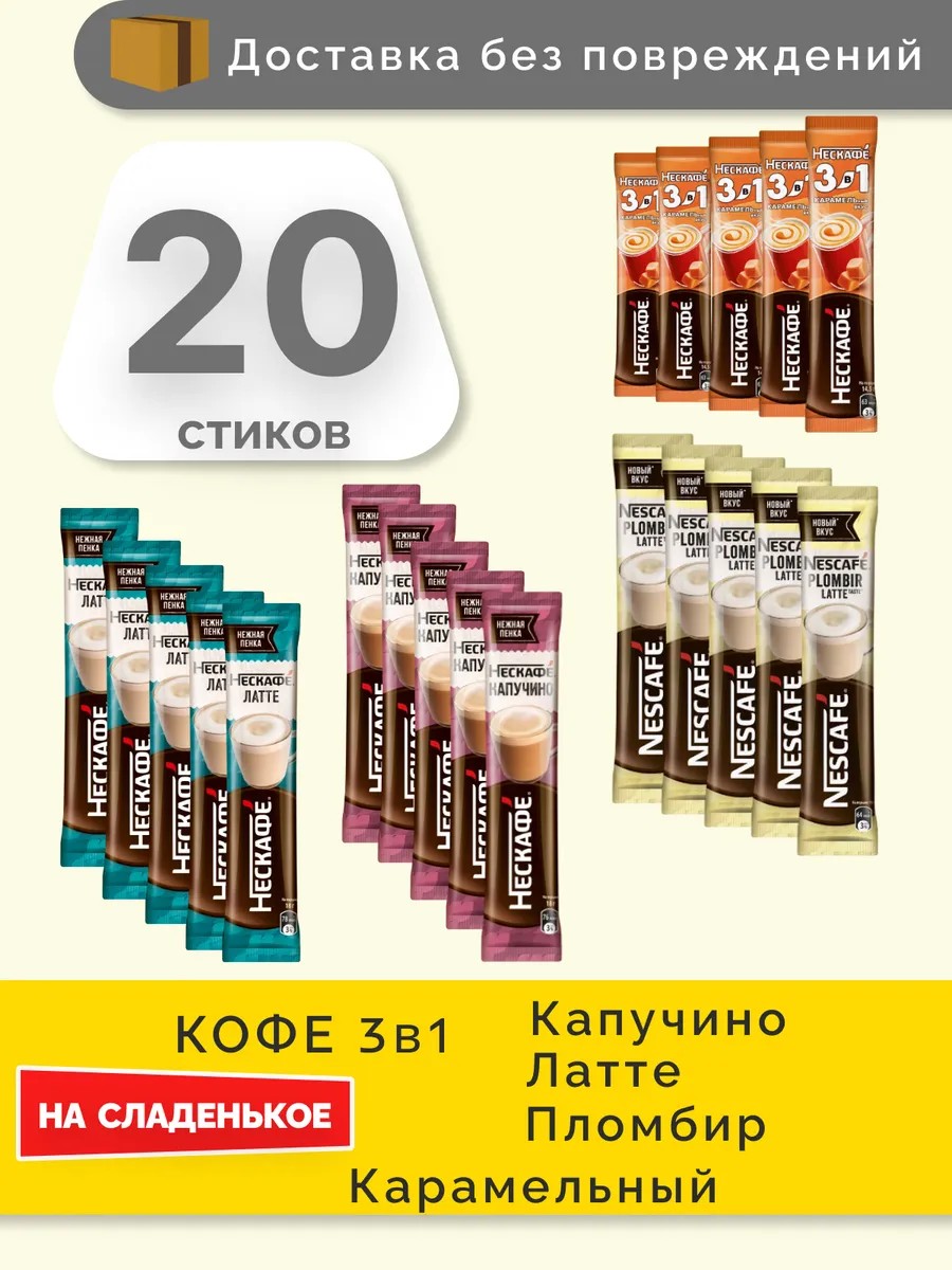 КомплектацияНабор Нескафе - Пломбир 5 шт, Карамельный 5 шт, Латте 5 шт, Капучино 5 шт