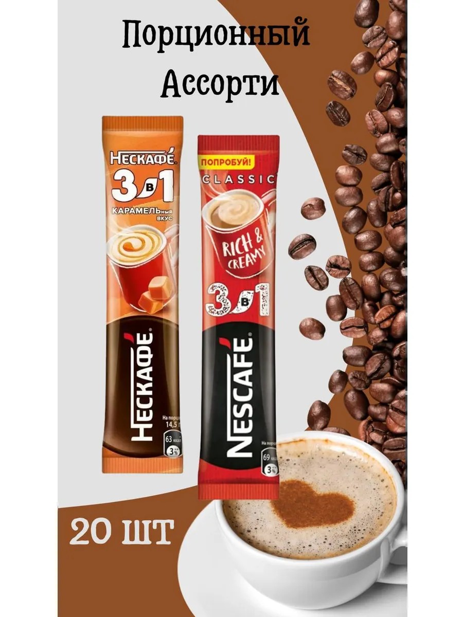 Nescafe Кофе Ассорти 3 в 1 Нескафе в пакетиках растворимый 20 шт
