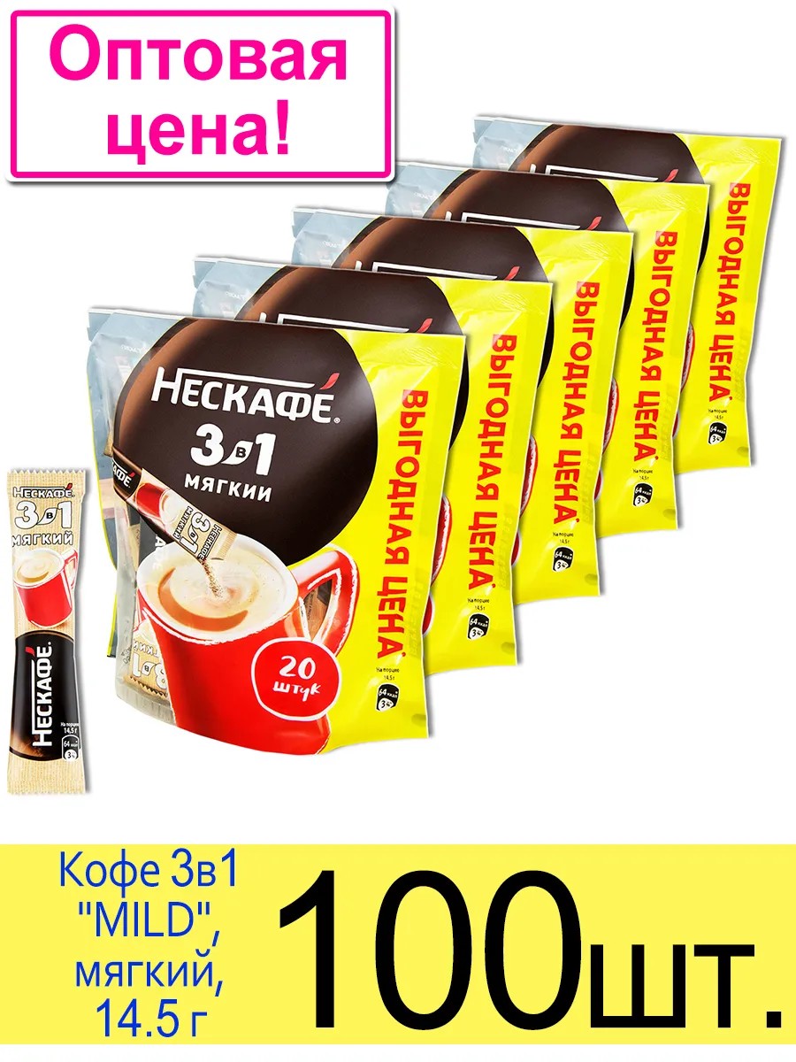 You can buy Nescafe "MILD" 3-in-1 coffee both retail and wholesale, offering great deals in sets of 2, 3, 5, 10, 20, 40, 60, and 100 packs. The price depends on the number of units in the set; the larger the set, the lower the price. Purchasing Nescafe coffee in sets of several packs allows you to save up to 30-50% on the cost of a single pack. Shipped in a cardboard box.