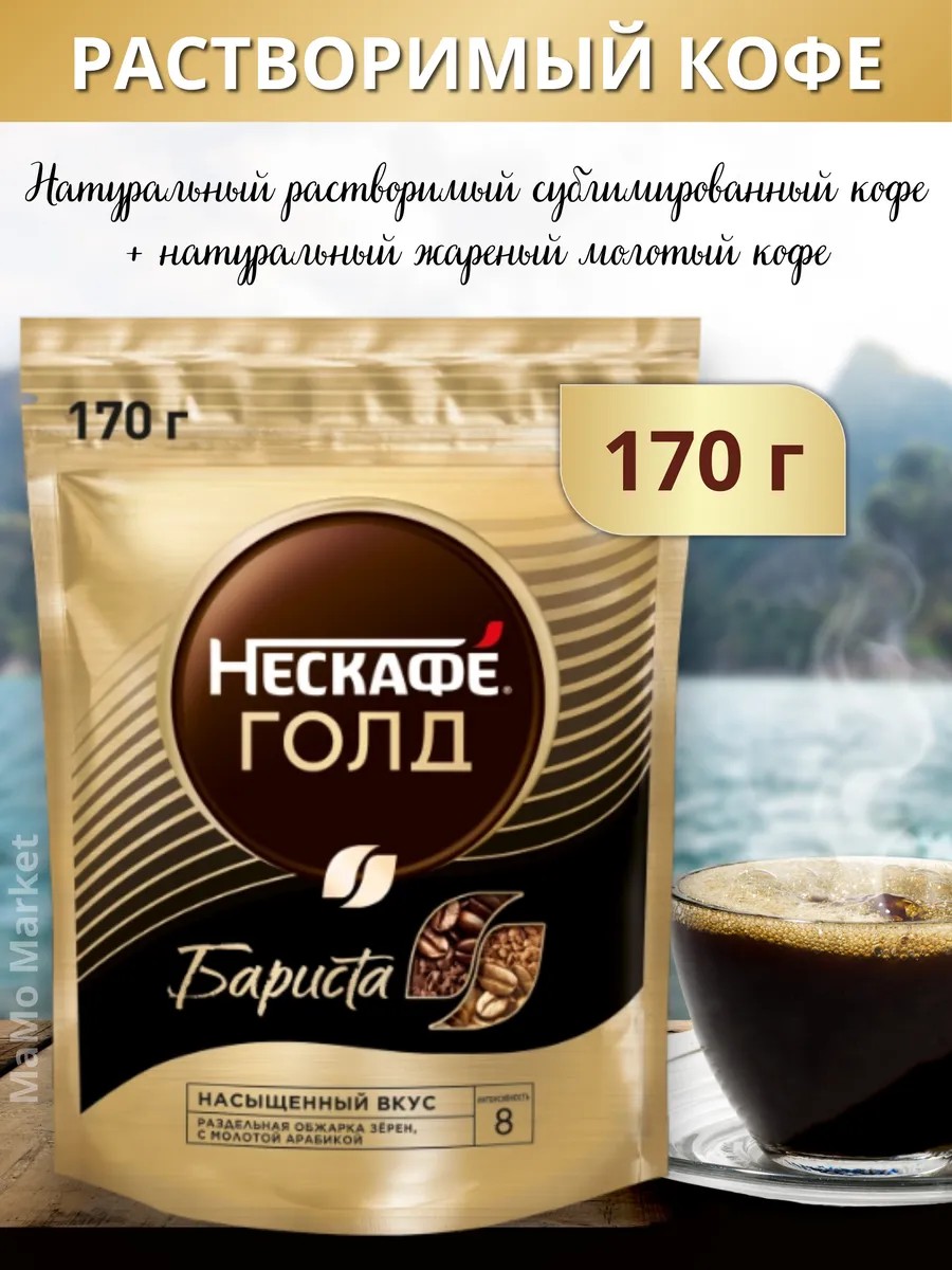 Комплектациякофе растворимый нескафе бариста 170 г; растворимый кофе Nescafe GOLD Barista 170 г; нескафе голд бариста 0,17кг