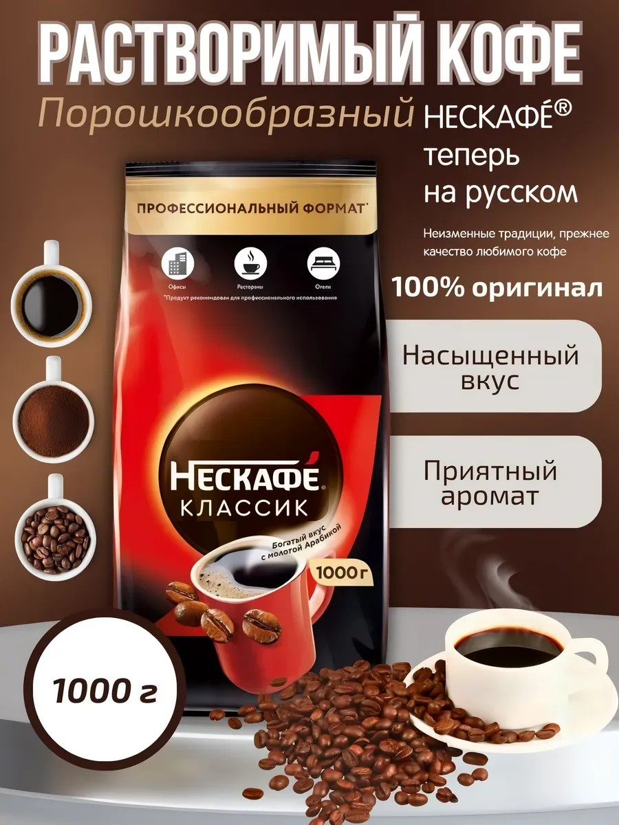 | Полное наименование товара | Кофе растворимый натуральный порошкообразный Нескафе Классик 1000 г |