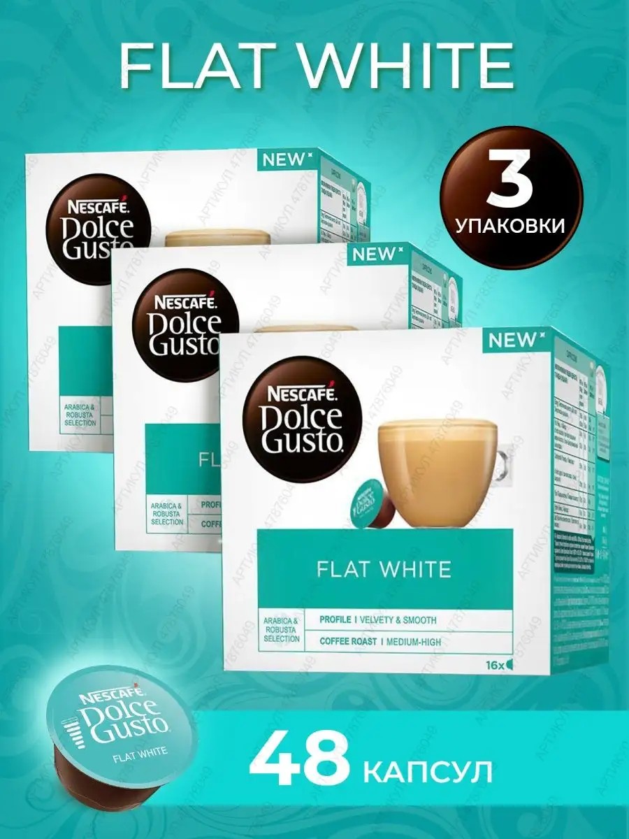 | Комплектация | кофе в капсулах - 3 упаковки; капсулы нескафе дольче густо - 48 шт; дольче густо flat white; дольче густо флэт вайт; флэт уайт |