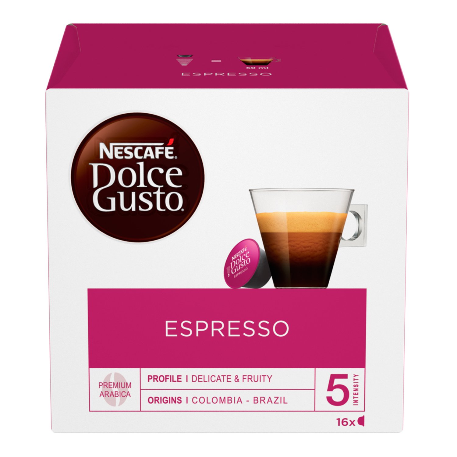 NESCAFÉ Dolce Gusto is the multi-beverage system that lets you enjoy over 30 hot and cold drinks, all gluten-free. You can choose from espresso, lungo, cappuccino, latte macchiato, tea, hot chocolate, and much more. Become the artist of your coffee break with NESCAFÉ Dolce Gusto. INGREDIENTS Roasted and ground coffee INSTRUCTIONS FOR USE To prepare espresso, open a capsule and place it in a Dolce Gusto coffee machine. Then, press the button for an espresso (or 60 ml of coffee). Enjoy your coffee. SAFETY WARNING May contain caffeine. Not suitable for pregnant women or people sensitive to caffeine. See more