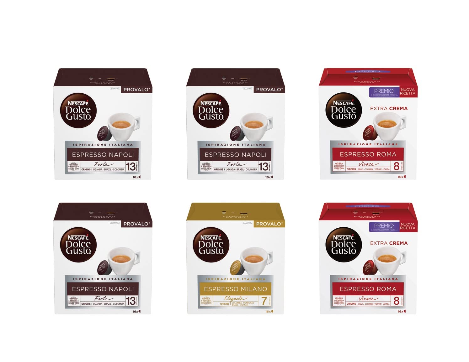 NESCAFE DOLCE GUSTO Nescaf Dolce Gusto Espresso Naples Espresso Roma & Espresso Milan 6 Boxes of 16 Capsules (96 Capsules)