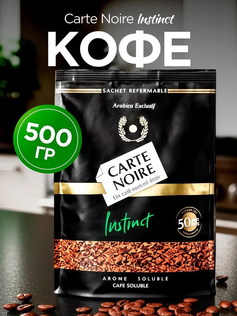 Carte Noire Insinct is a premium instant coffee that embodies the finest French traditions. Experience a magnificent, rich taste with distinct citrus notes and an incomparable aroma. Natural Carte Noire coffee is made from freshly roasted 100% Arabica beans imported from Latin America and Asia. Convenient zip-lock bag format. The large, affordable 500-gram package will allow you to spend more wonderful moments with your favorite drink. One package is enough to prepare 250 cups of coffee. After opening, store the instant coffee in a soft, tightly sealed zip-lock bag in a cool, dry place. Preparation: Place 1–2 teaspoons of Carte Noire coffee in a cup. Add hot, but not boiling, water. Add sugar and cream to taste. The impeccable, intense flavor and distinctive aroma transform every sip of Carte Noire coffee into a moment of exquisite pleasure! Conveniently packaged in a zip-lock bag, Noire Instinct instant coffee is the choice of those who value true quality and unique taste. Discover this aromatic and rich drink now!