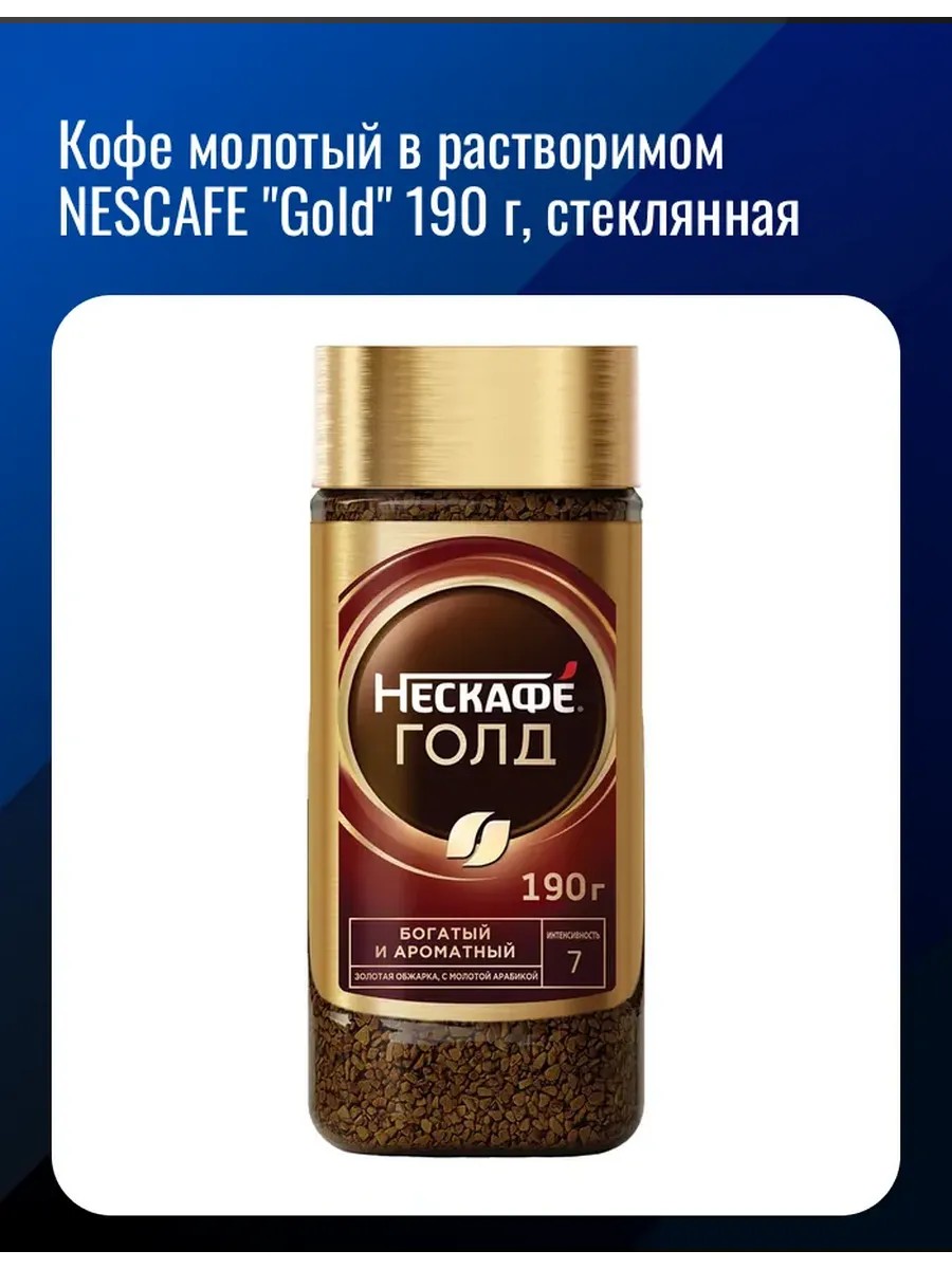 Nescafe Кофе молотый в растворимом NESCAFE "Gold" 190 г, стеклянная