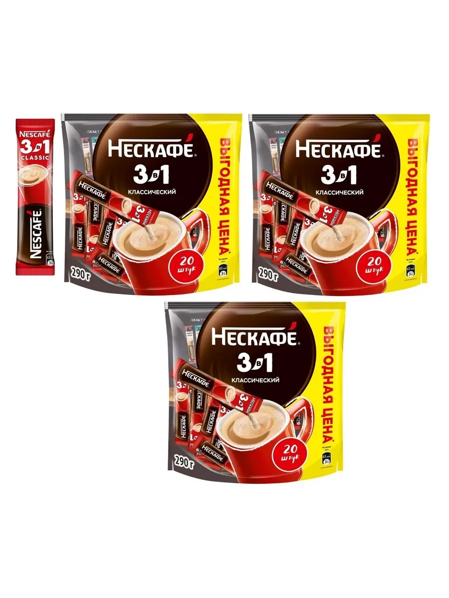 Nescafe Кофе нескафе 3в1 Classic Классический 3 шт по 20 пакетиков!