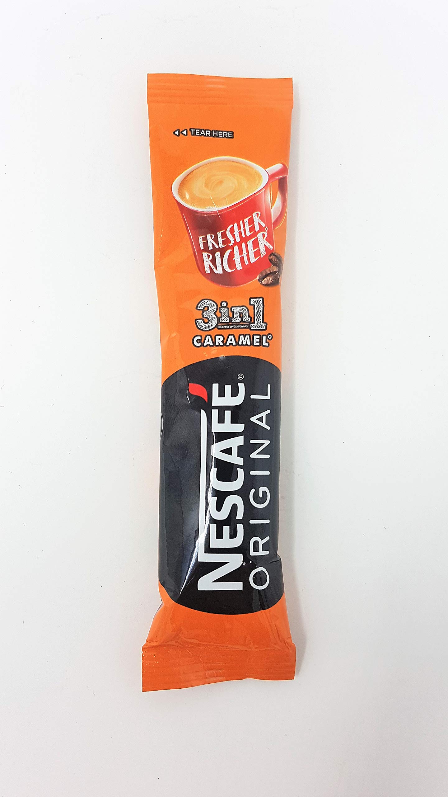 Product Type : Coffee. Brand : Nescafé. Nescafe Original 3 In 1 Caramel Instant Coffee 1 Cup Stick Sachets.