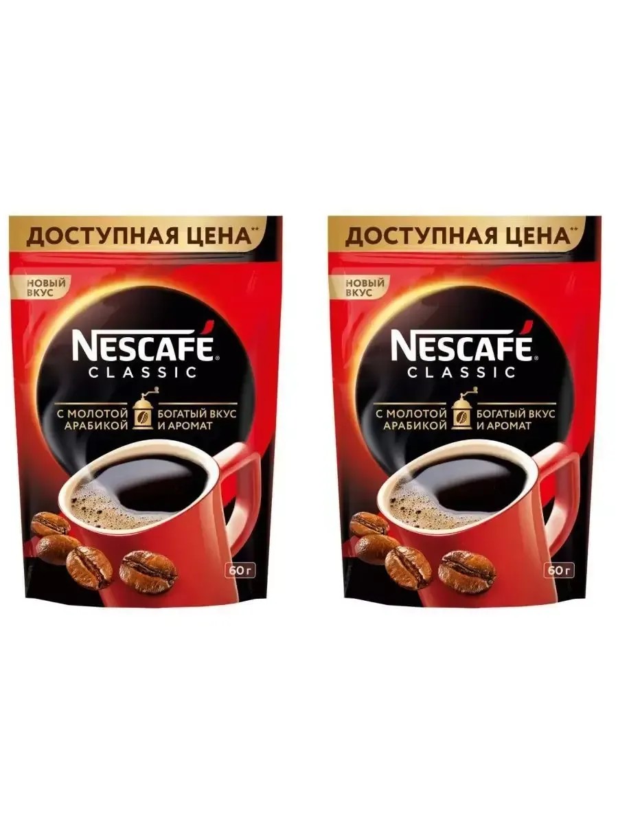 Nescafe, Кофе растворимый Classic. Комплект из 2 шт, общий вес комплекта 120 г. Nescafe Classic — это 100% натуральный растворимый кофе с добавлением молотых зерен Арабики. Раскройте богатый вкус и аромат — пробудите все ваши чувства для отличного начала дня! Зерна для Nescafe Classic выращивают в Латинской Америке, Азии и Африке. Производитель с любовью собирает спелые красные кофейные ягоды, обжаривает их по специальной технологии, чтобы сохранить природную пользу. А после перемалывает, чтобы вы в любой момент могли приготовить чашку горячего терпкого напитка прямо у себя дома. Получайте удовольствие от каждого глотка, расслабляйтесь и погружайтесь в приятные воспоминания.