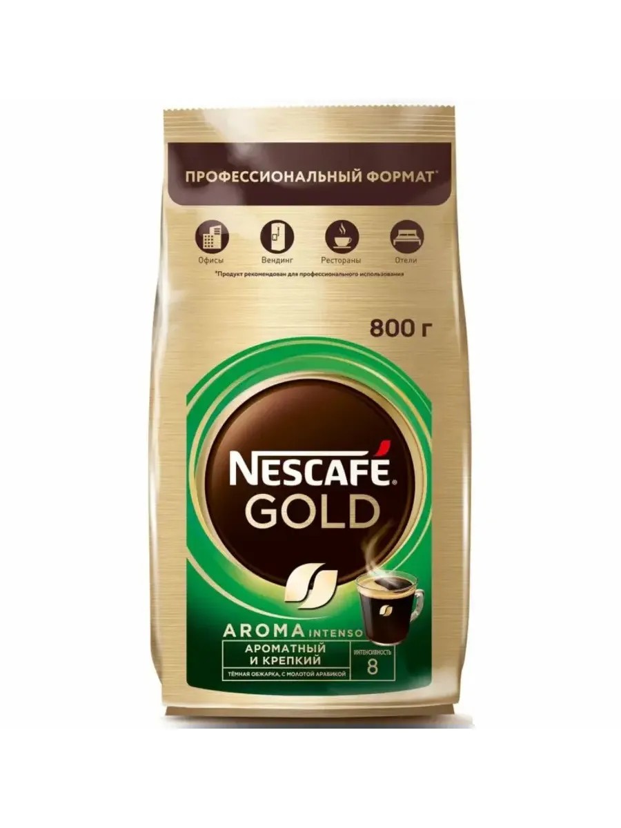 Насладитесь интенсивным вкусом и ярким ароматом растворимого кофе Nescafe Gold Aroma Intenso. Мы тщательно отбираем кофейные зерна и обжариваем их до темно-коричневого цвета, чтобы раскрыть всю глубину вкуса и аромата в каждой чашке кофе Nescafe Gold Aroma Intenso. В суете рабочего дня важно находить время для себя. Сделайте паузу и ощутите биение жизни здесь и сейчас с кофе Nescafe Gold. Растворимый кофе Nescafe Gold Aroma Intenso подходит для использования в офисах, ресторанах, отелях и вендинговых аппаратах.