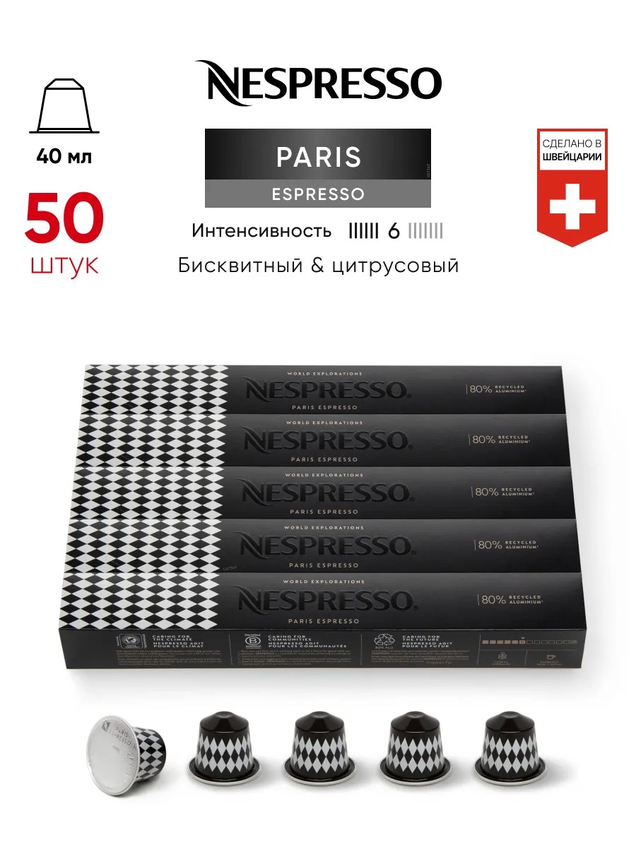 Nespresso 50 шт Paris Espresso - кофе в капсулах Nespresso Original