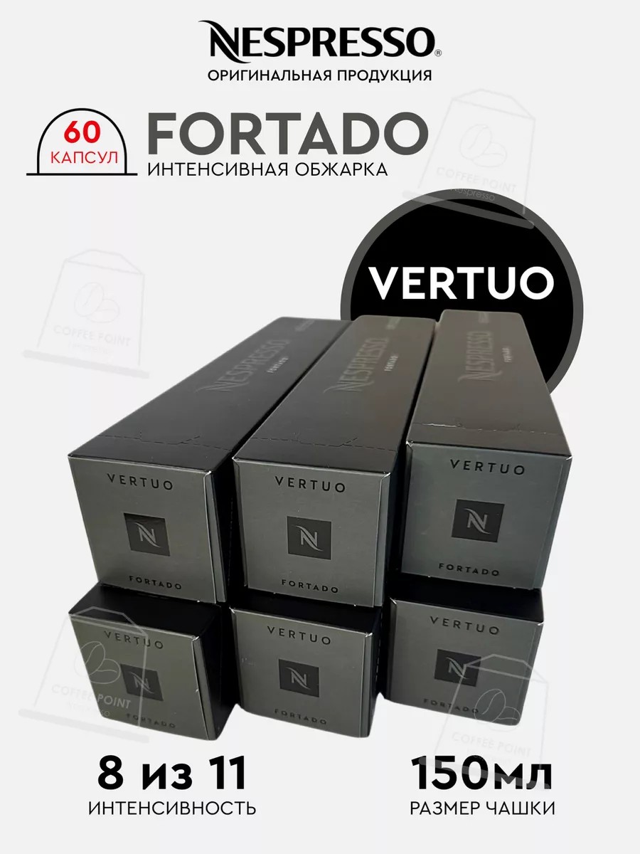 Nespresso vertuo Fortado самый насыщенный кофе в размере Gran Lungo имеет плотную консистенцию и наполнен нотками какао и дуба.