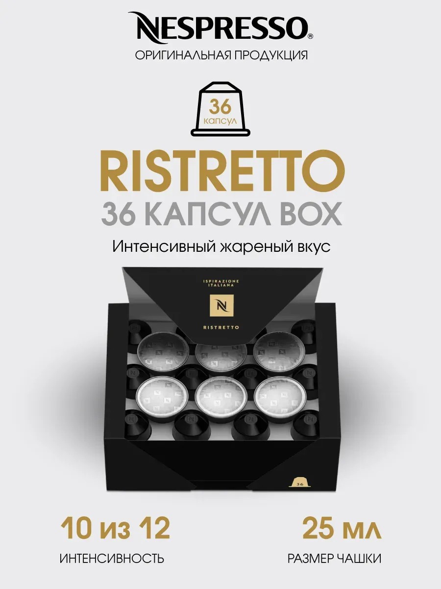 В упаковке 36 оригинальных капсул кофе неспрессо ристретто.
