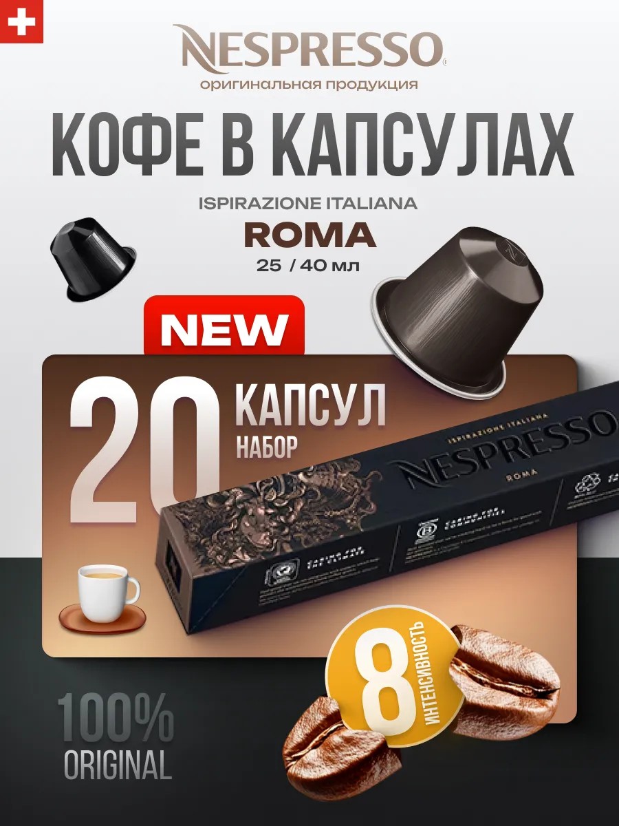 Оригинальные капсулы Nespresso Original Roma Inspirazione — эта смесь представляет собой исключительно сложную композицию с тонким балансом между интенсивностью обжарки, глубиной древесных и злаковых нот и утонченной кислинкой элегантных ароматов. Сочетает древнее наследие Рима с прикосновением современности, эта непродолжительная обжарка раскрывает интенсивность кофе с элегантной ароматикой, отражая многоликость этого великого города.