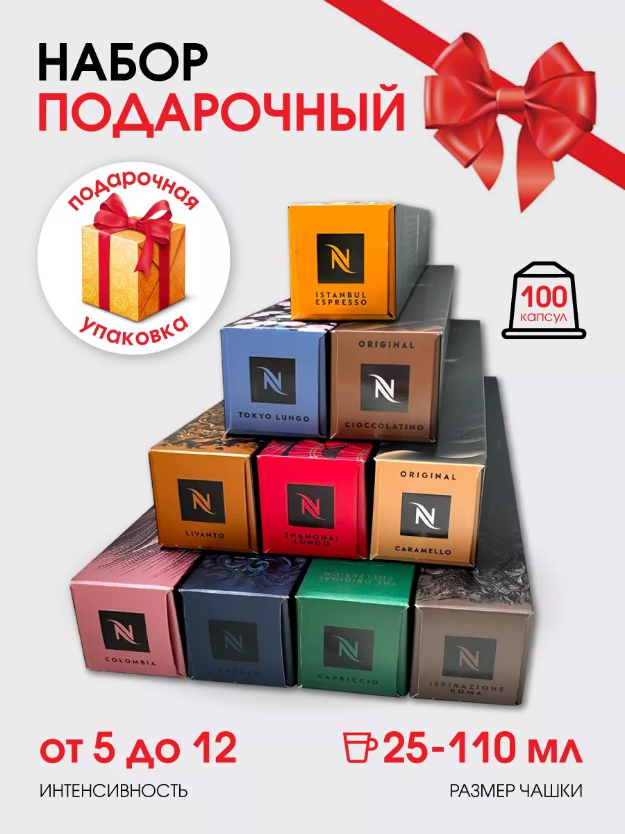 Подарочный набор кофе из 100 капсул для кофемашины неспрессо (10 разнообразных блендов кофе).