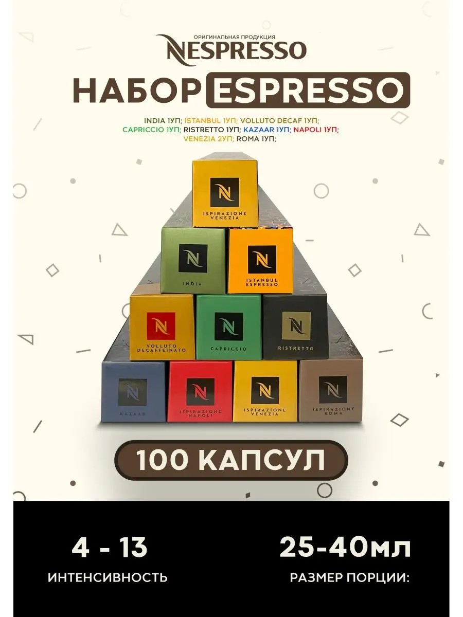 Nespresso Натуральный молотый для кофемашины набор Espresso 100 шт