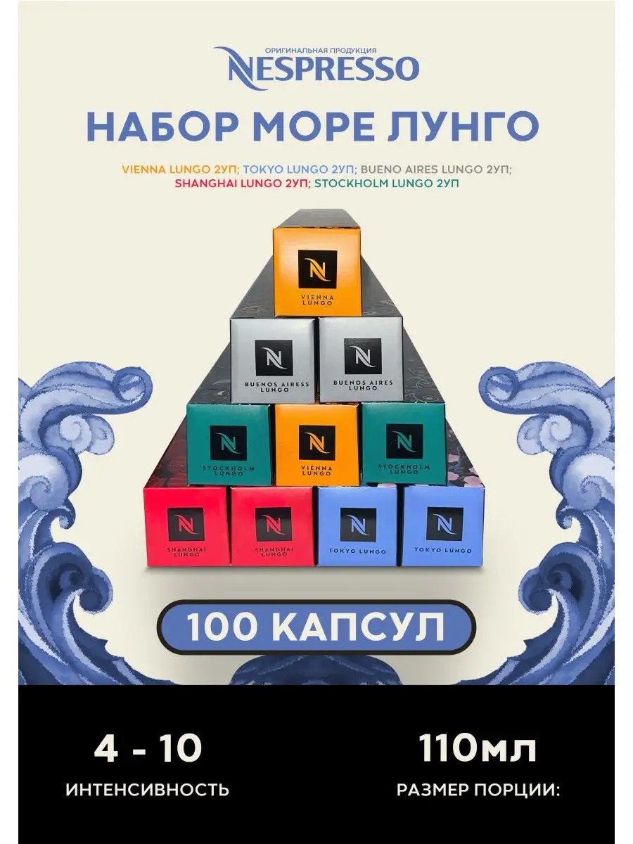 Nespresso Натуральный молотый для кофемашины набор Lungo 100шт