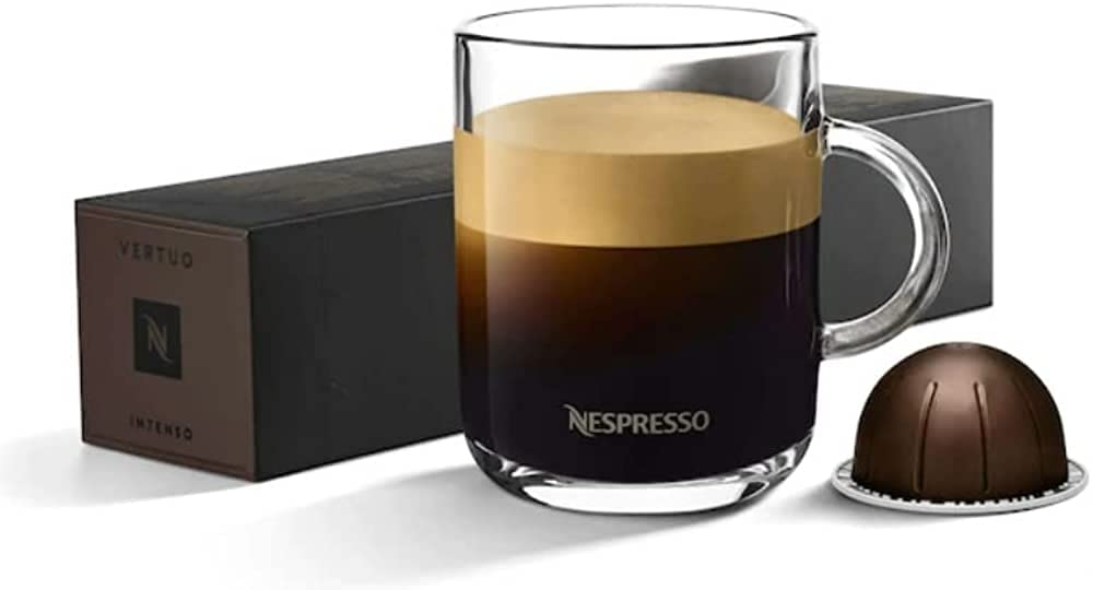 Intense and full-bodied - Intensity 8 - For Nespresso Vertuo coffee 150 ml - Only for NEPSRESSO VERTUO machines - The most intense Gran Lungo Vertuo coffee, decaffeinated. The Indian Robusta from Fortado Decaffeinato captivates with its full strength, while the notes of cocoa and oak are preserved in the decaffeinated Colombian Arabica. INGREDIENTS coffee