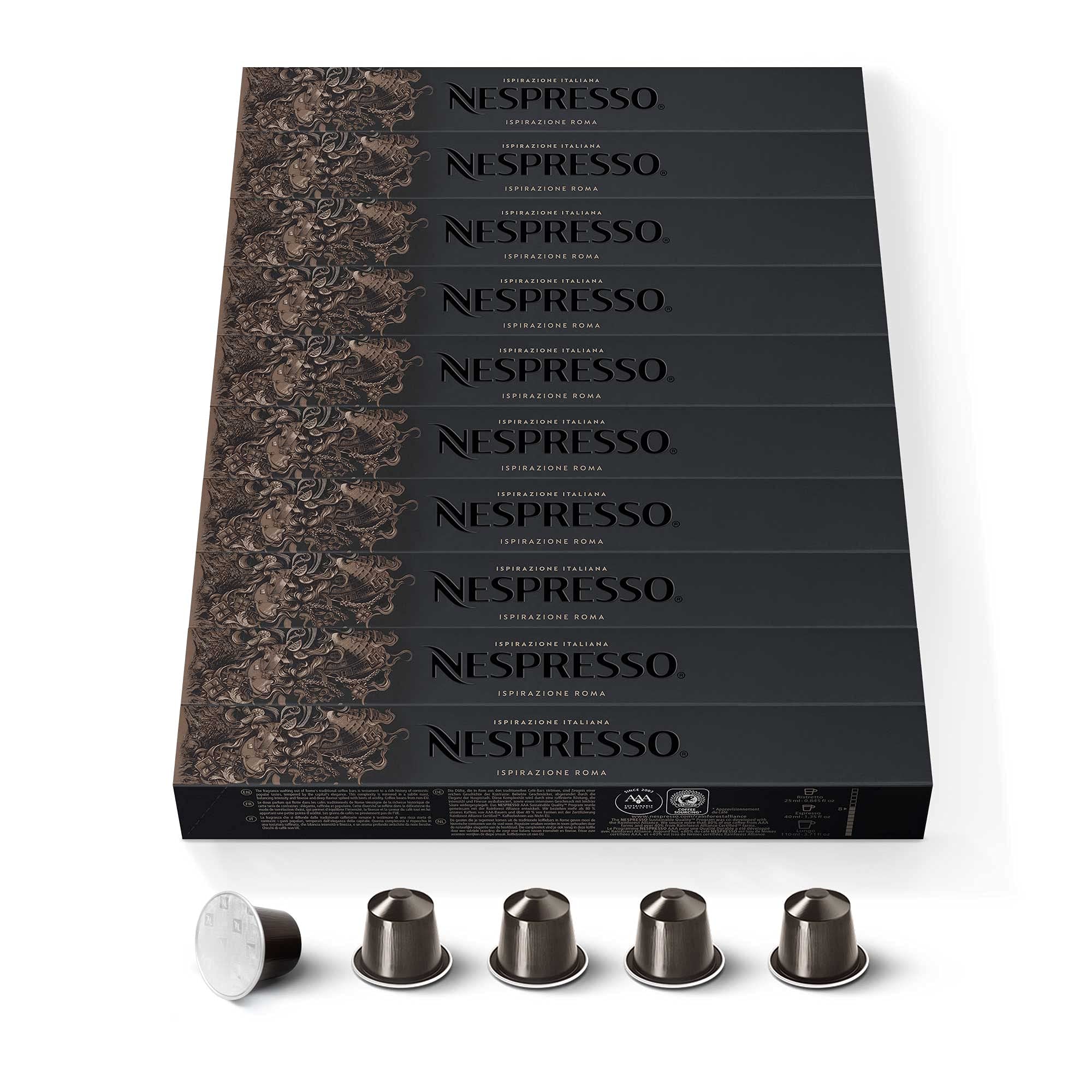 Nespresso Original – 100 Capsules de Café Roma – Intensité 8 – Pour Ristretto Espresso – (10 étuis de 10)