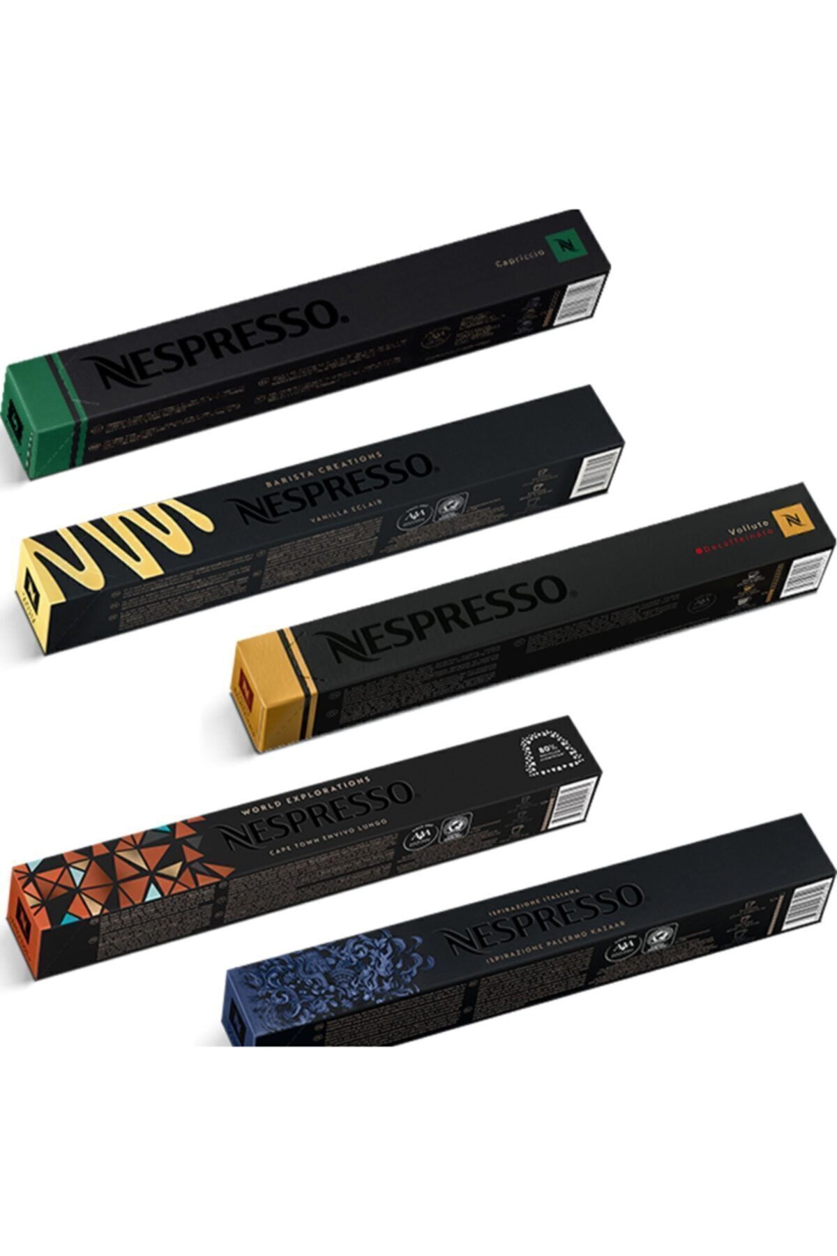 Nespresso Vanilla Eclair- Capriccio- Palermo Kazaar- Cape Town and Volluto Decaf Capsule Coffee 5x10 Lu