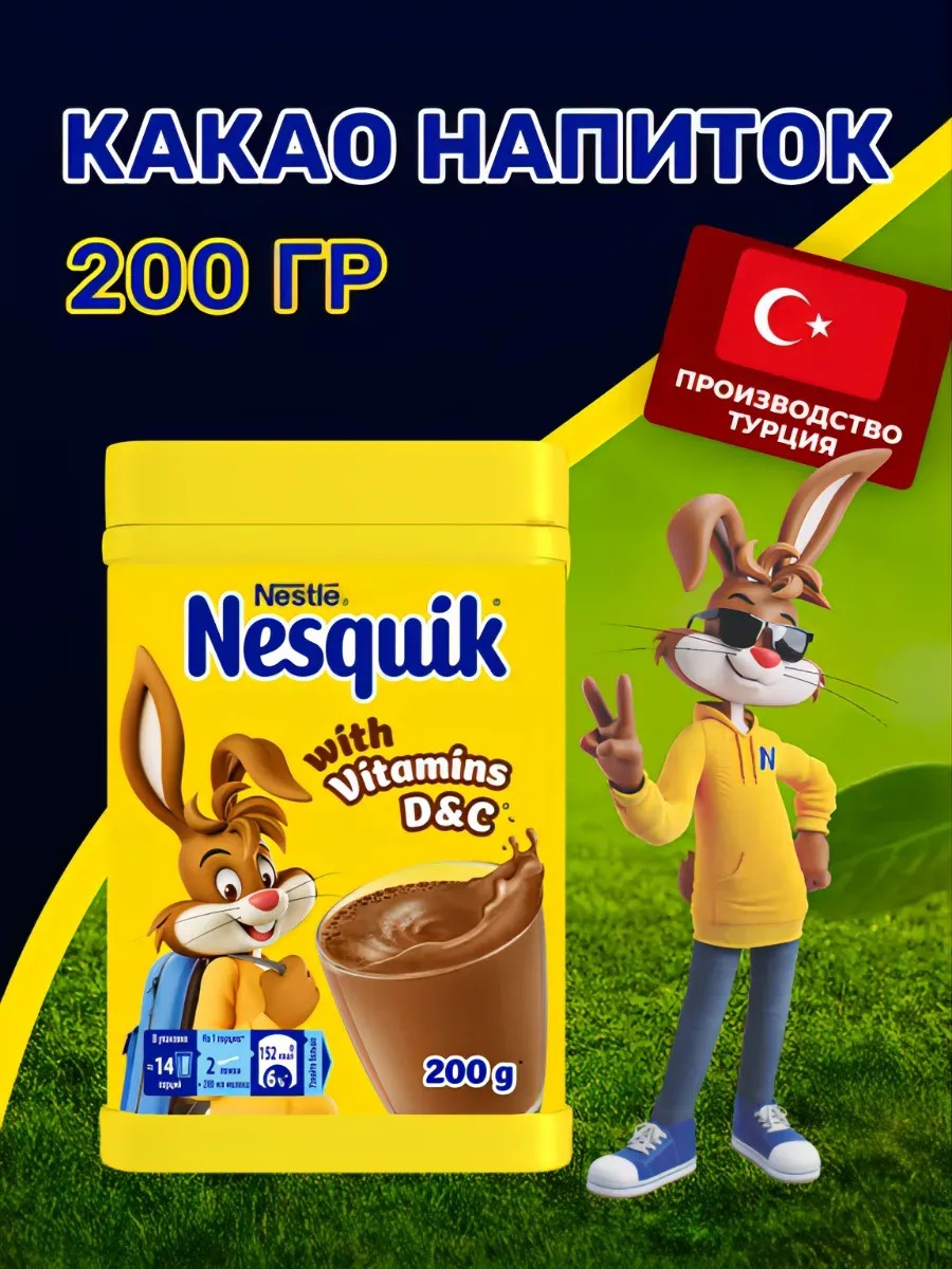Оригинальное классическое какао Nesquik турецкого производства от компании Nestle. Какао - порошок сделан из натуральных какао - бобов отборного качества. В составе напитка нет искусственных ароматизаторов, консервантов и вредных добавок. Ингредиент напитка включают натуральный ванилин и корицу, которые дополняют шоколадный вкус какао. Напиток витаминизированный, поэтому он еще и полезен для детского здоровья. Несквик быстро растворяется как в горячем, так и в холодном молоке, не требует кипячения. Это делает его универсальным и легким в приготовлении. Как основу для напитка можно использовать не только молоко, но и сливки любой жирности. Сахар в составе делает какао еще вкуснее, а также заряжает энергией и повышает пищевую ценность напитка. Это идеальный выбор для детского питания в морозные зимние дни. Растворимое какао подходит не только для мальчиков и девочек. Его можно пить на десерт всей семьей, ведь вкус понравится и взрослым сладкоежкам. Кружка горячего ароматного напитка - прекрасное средство для защиты от простуды в весеннее или осеннее время.