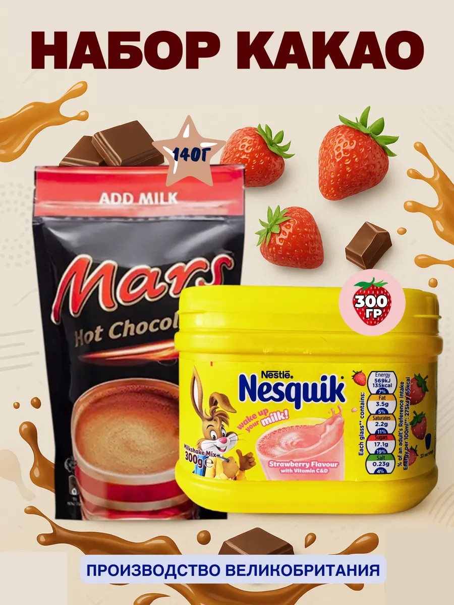 | Комплектация | несквик клубника 300гр - 1 шт; горячий шоколад Марс 140 гр - 1 шт |