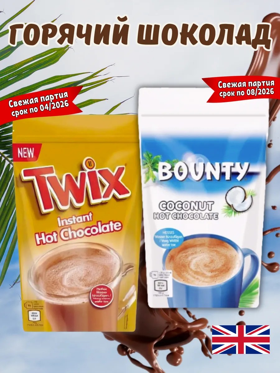 набор сладостей из горячего шоколада Twix и Bounty. Два пакета с разными вкусами чудесного горячего шоколада, каждый весом по 140 грамм.