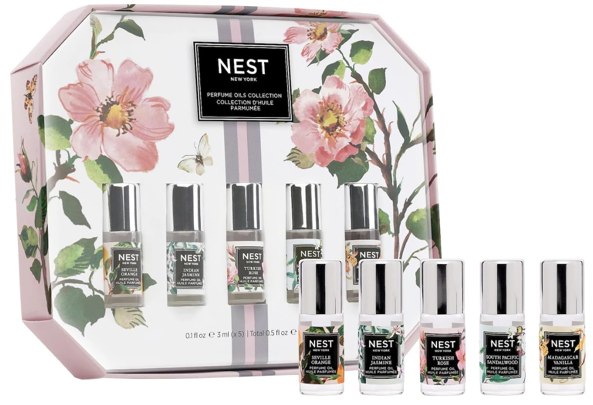 NEST New York Mini Perfume Oils Collection 0.1fl oz/3ml (x5) Seville Orange Turkish Rose South Pacific Sandalwood Indian Jasmine and Madagascar Vanilla. 1 Fl Oz (Pack of 1)