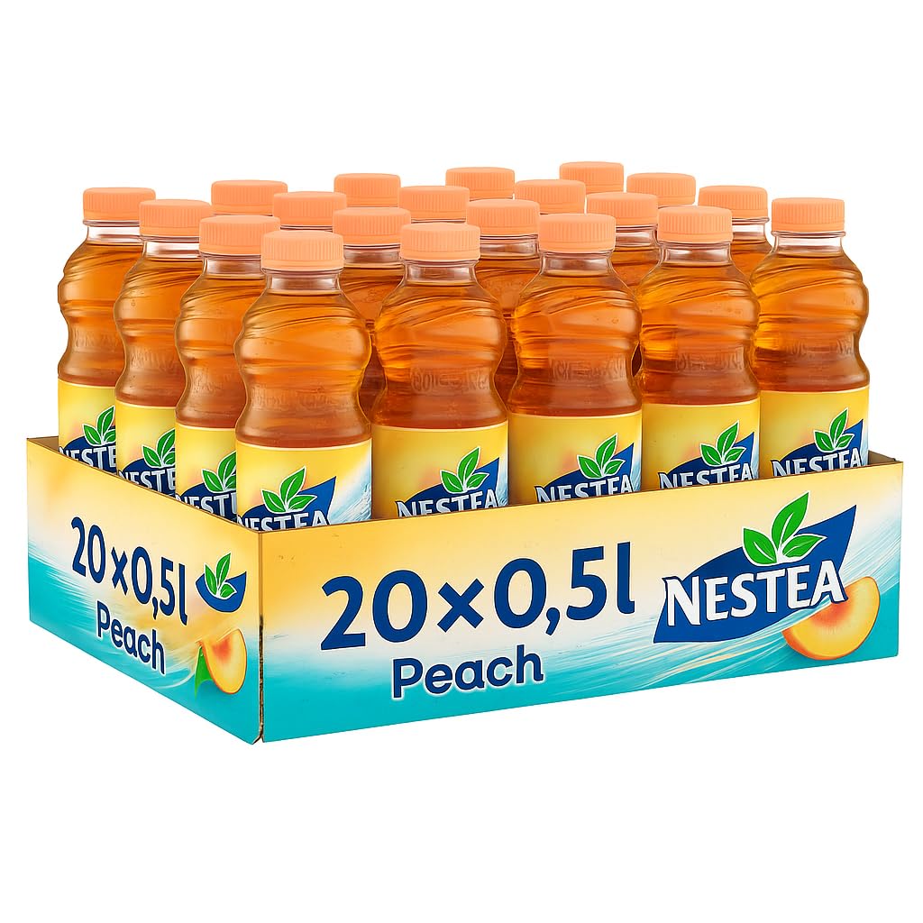 NESTEA Peach Black Iced Tea with Peach 20 x 0.5L (6L Total) Light and smooth fruity iced tea made with black tea and natural peach notes. This pack of 20 x 0.5L bottles is perfect for family, the office, and events – or simply for you to keep on hand. Best enjoyed iced. (Information on the seller's page):contentReference[oaicite:0]{index 0} Why does it taste so good? Classic black tea meets sunny, fruity peach. Smooth and pasteurized – Carbon-free, easy to digest. Value pack: 20 x 0.5L 6L of enjoyment. Ingredients: Water, sugar, fructose, acidity regulators (citric acid, sodium citrate), concentrated peach juice (0.1 ), black tea extract (0.08 ), natural peach flavoring with other natural flavorings, sweeteners: steviol glycosides. Nutritional values (diameter: 100 ml) - Energy: 79 kJ 19 kcal - Fat: 0.5 g of which saturates: 0 g - Carbohydrate: 4.5 g - Sugar: 4.5 g - Protein: 0.5 g - Salt: 0.02 g. Source: Macro product page (Peach 0.5 l, pack of 20). Storage and serving advice: Store in a cool, dry, and dark place. Once opened, keep refrigerated and consume within 24 hours. Serve chilled – neat or with a slice of fresh peach and mint. INGREDIENTS Potable water, sugar, fructose, acidity regulators: citric acid and sodium citrate, concentrated peach juice (0.1 ), black tea extract (0.08 ), natural peach flavoring with other natural flavorings, sweeteners: stevia glycosides. SAFETY WARNING Store in a dark place. Once opened, keep refrigerated and consume within 48 hours. See moreNESTEA Peach 20 x 500 mlDESCRIPTION DU PRODUIT DESCRIPTION DU PRODUIT NESTEA Peach Thé glacé noir à la pêche 20 × 0,5 l (6 l au total) Thé glacé fruité léger et silencieux à base de thé noir avec des notes naturelles de pêche. Le lot de 20 bouteilles de 0,5 l est parfait pour la famille, le bureau et les événements – ou tout simplement pour vous de les garder toujours à portée de main. Il est préférable de profiter bien refroidi. (Informations sur la page du vendeur) :contentReference[oaicite:0]{index 0} Pourquoi il a le goût ? Le thé noir classique rencontre la pêche ensoleillée et fruitée. Silencieux et pasteurisé - Sans gaz carbonique, agréable à digérer. Pack avantageux : 20 × 0,5 l 6 l de plaisir. Ingrédients : Eau, sucre, fructose, régulateurs d'acidité (acide citrique, citrate de sodium), jus de pêche concentré (0,1 ), extrait de thé noir (0,08 ), arômes naturels de pêche avec d'autres arômes naturels, édulcorants : glycosides de stéviol. :contentReference[oaicite:1]{index 1} Valeurs nutritionnelles (diamètre : 100 ml) - Énergie : 79 kJ 19 kcal - Graisses : 0,5 g dont acides gras saturés : 0 g - Glucides : 4,5 g - Sucre : 4,5 g - Protéines : 0,5 g - Sel : 0,02 g. Source : page produit macro (Peach 0,5 l, lot de 20). :contentReference[oaicite:2]{index 2} Conseil de stockage et de service. Conserver dans un endroit frais, sec et sombre. Après ouverture, conserver au réfrigérateur et consommer dans les 24 heures. Servir glacé – pur ou avec une tranche de pêche menthe fraîche. INGRÉDIENTS Eau potable, sucre, fructose, régulateurs d'acidité : acide citrique et citrate de sodium, jus de pêche concentré (0,1 ), extrait de thé noir (0,08 ), arômes naturels de pêche avec d'autres arômes naturels, édulcorants : glycosides de stévia de stévia. AVERTISSEMENT DE SÉCURITÉ Conserver dans un endroit sombre. Après ouverture, conserver au réfrigérateur et consommer dans les 48 heures. Voir plus