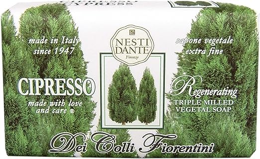 Immerse yourself in the enchanting aroma of the Tuscan countryside with NESTI DANTE's Dei Colli Fiorentini Cypress Tree Soap. Crafted with the utmost care, this 250g (8.8 oz) bar soap captures the essence of the majestic cypress trees that dot the rolling hills of Florence. Infused with natural cypress oil, this luxurious soap envelops you in a captivating blend of woody and earthy notes, transporting you to the serene landscapes of Italy. Gentle yet effective, it cleanses your skin while leaving it delicately fragranced and refreshed. Indulge in the timeless elegance of Italian artistry with every lather, and let the rich lather whisk you away to the sun-drenched vistas of Tuscany. Experience the art of bathing, elevated to a sublime ritual with NESTI DANTE's Cypress Tree Soap. SAFETY WARNING For external use only