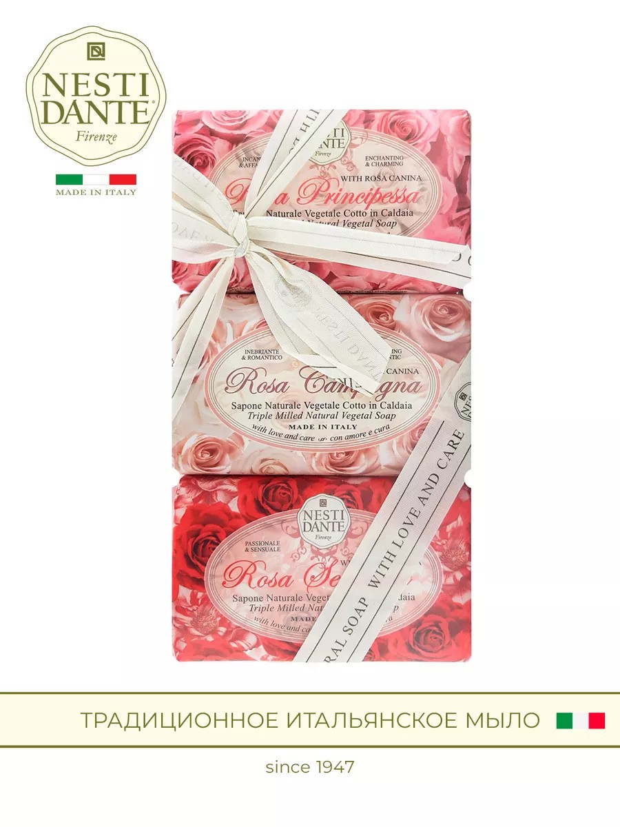 NESTI DANTE Набор туалетного мыла Роза, 3х150 г