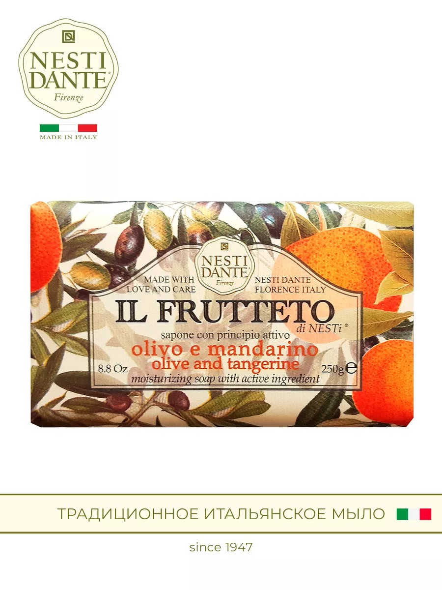 Nesti Dante - экологически чистое итальянское мыло, обогащенное растительными экстрактами и маслами. Производится во Флоренции с 1947 года по старинной котловой технологии варки мыла. Не содержит вредных поверхностно-активных веществ, сульфатов, парабенов, синтетических масел и искусственных красителей. Без аллергенов и ингредиентов животного происхождения. Кулинарные традиции Тосканы, и Флоренции в частности, несколько отличаются от кухни остальной Италии. Но что остается неизменным так это большое разнообразие фруктов на десерт. Линия мыла Il Frutteto (Фруктовое) - настоящая фруктовая корзина с итальянским темпераментом! Мыло Оливковое масло и мандарин имеет нейтральный растительно-фруктовый аромат, без ярких фруктовых акцентов. Экстракт листьев оливы - основной компонент оливы - олеуропеин - мощный антиоксидант. А также он содержит флавоноиды, витамины А, D, Е, К, значительное количество витамина С, лютеолин, танины, дубильные вещества, органические кислоты. Каждый кусочек мыла с любовью и заботой для вашей кожи.Вы можете приобретать мыло Nesti Dante не только в подарок - день рождения, новый год, рождество, день всех влюбленных, 14 февраля, 8 марта, 23 февраля – но и без повода, просто чтобы подарить приятные эмоции себе или близким.Сделано в Италии. Мыло Nesti Dante можно найти по запросу: мыло туалетное твердое, мыло косметическое, мыло подарочное, мыло на 2023 год, итальянское мыло, красота для женщин, красота из италии, мыло из италии, из италии с любовью, дольче вита, dolce vita, мыло для тела, мыло кусковое, мыло банное, мыло жидкое, гель для душа, мыло твердое, мыло натуральное.