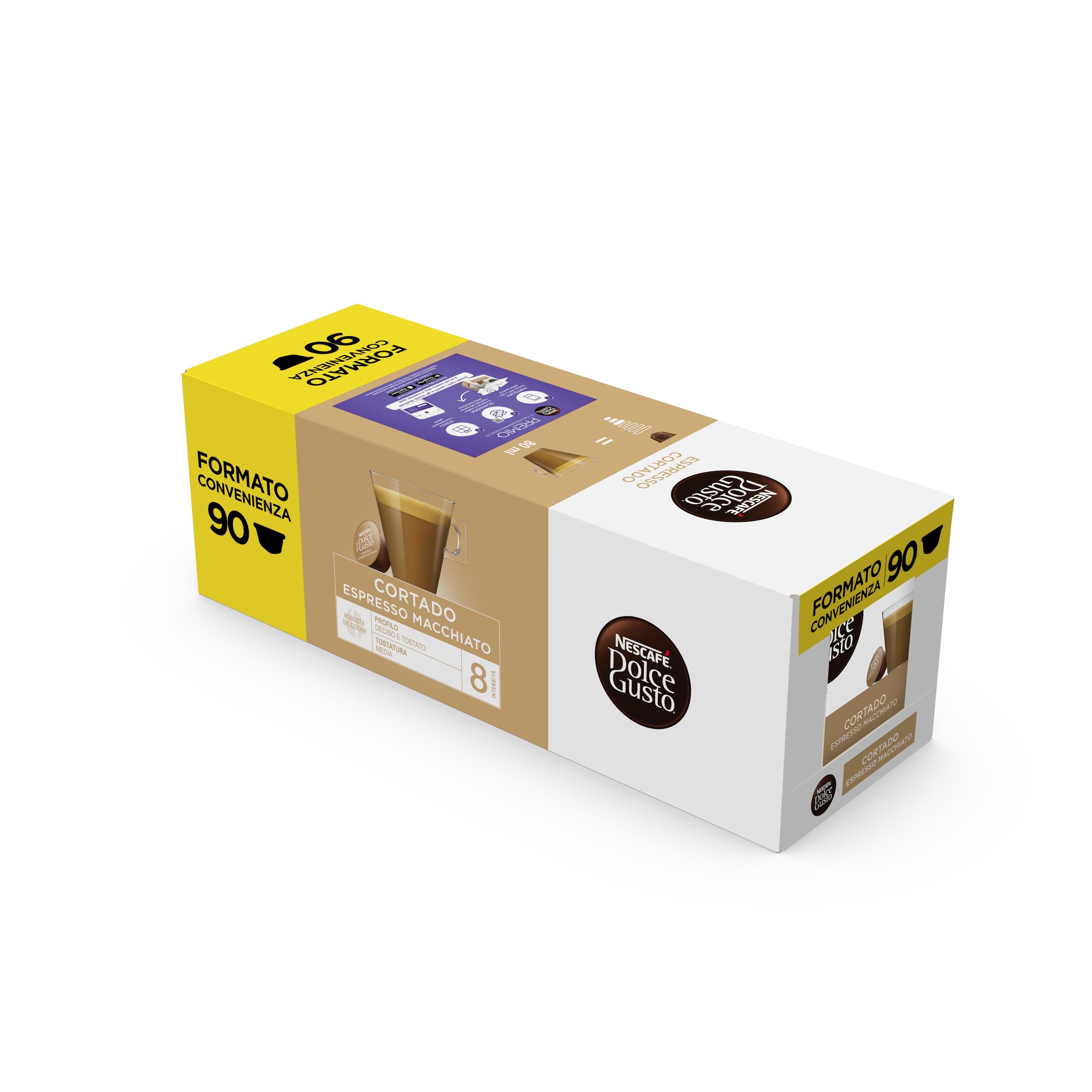 90 Nescafé Dolce Gusto Espresso Macchiato Cortado Coffee Capsules Size: 70 capsules Pack of 1 Brand: Nestlé SAFETY WARNING Store in a cool, dry place
