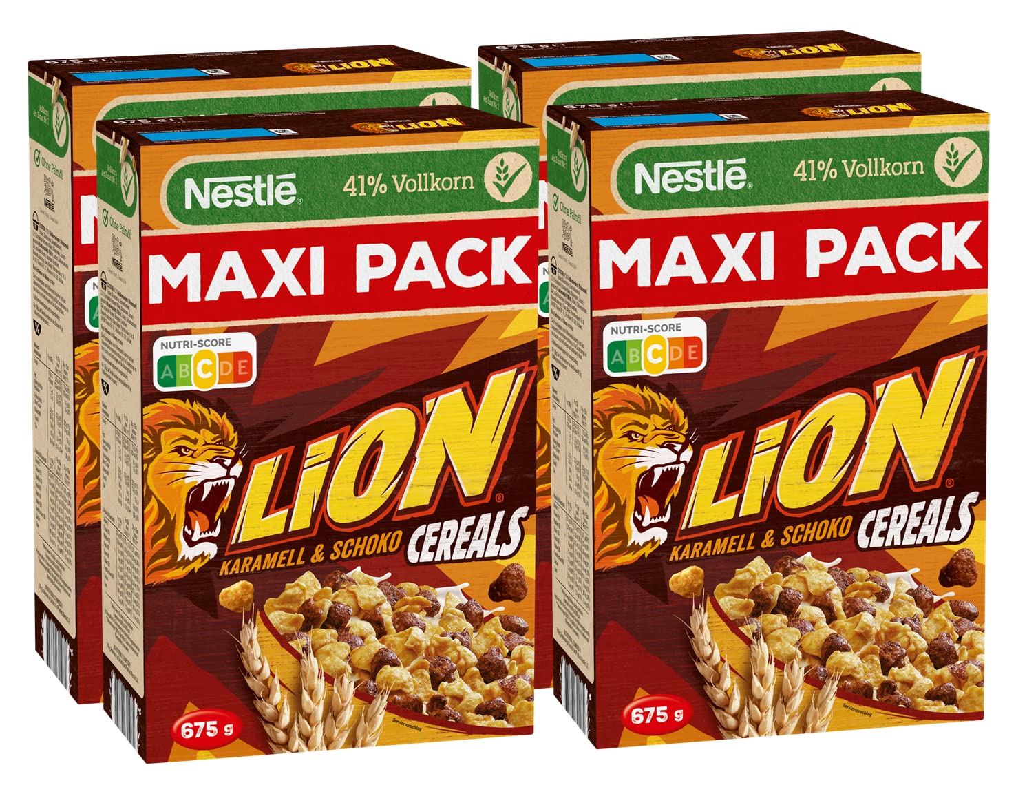 Nestl Lion Cereal Caramel and Chocolate Cereal with Whole Grain 4 Pack (4 x 675 g)